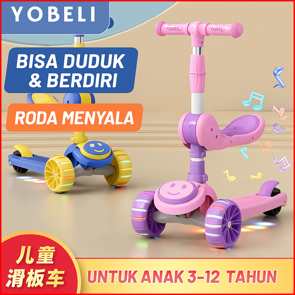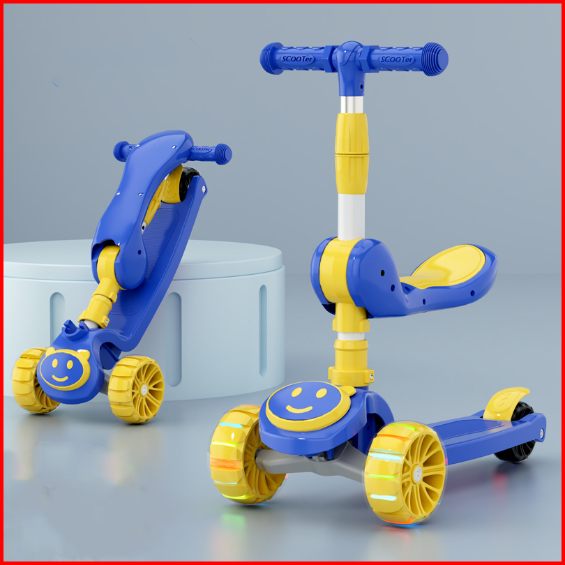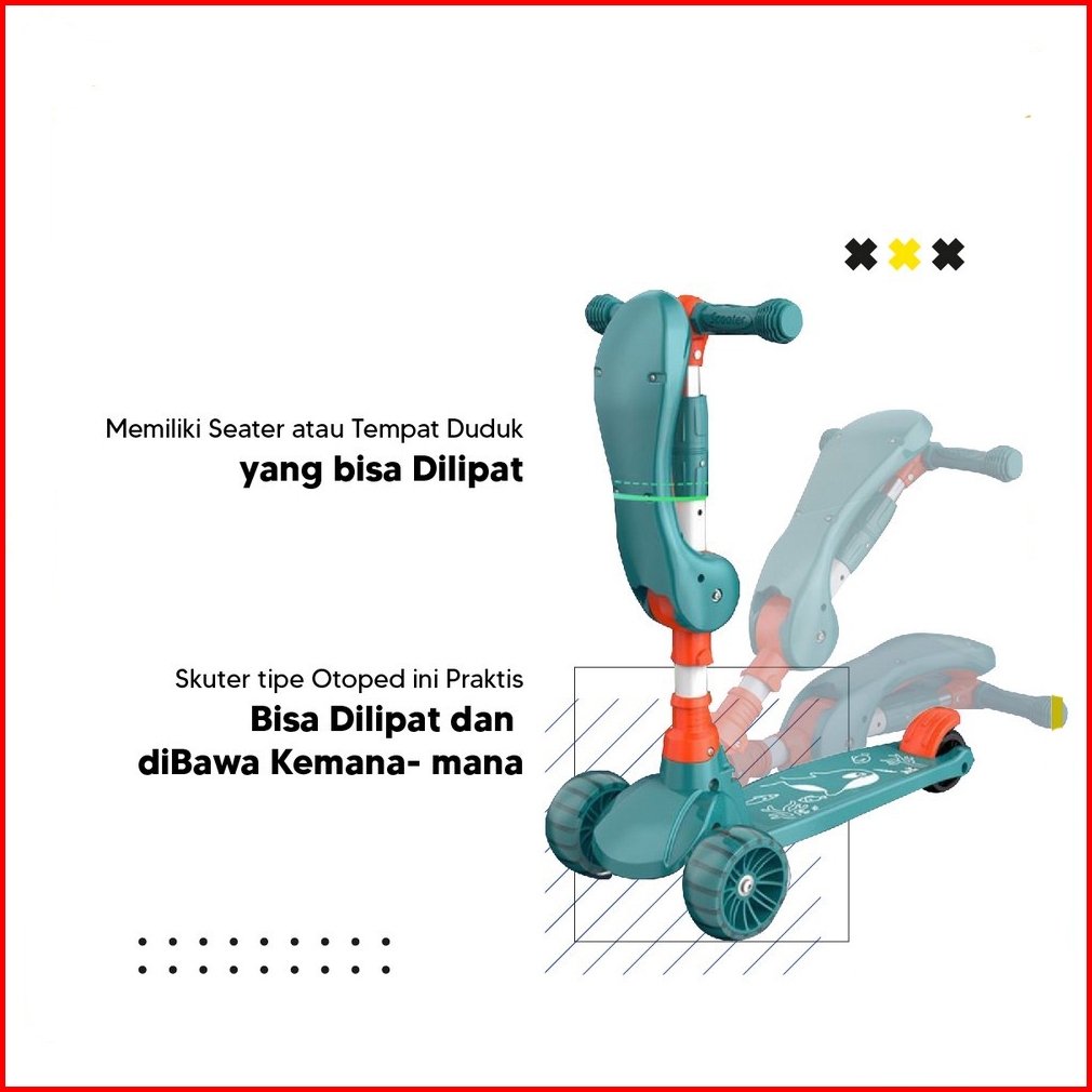 Scooter Anak 3 Roda Lipat 2 In 1 Bisa Duduk Berdiri Dengan Roda Lampu Dan Rem Untuk Anak 3-12tahun