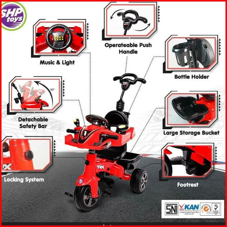 Sepeda Roda Tiga Anak Dorongan Besi - Sepeda Roda Tiga Dengan Pengaman - Sepeda Goes Shp Trx 575