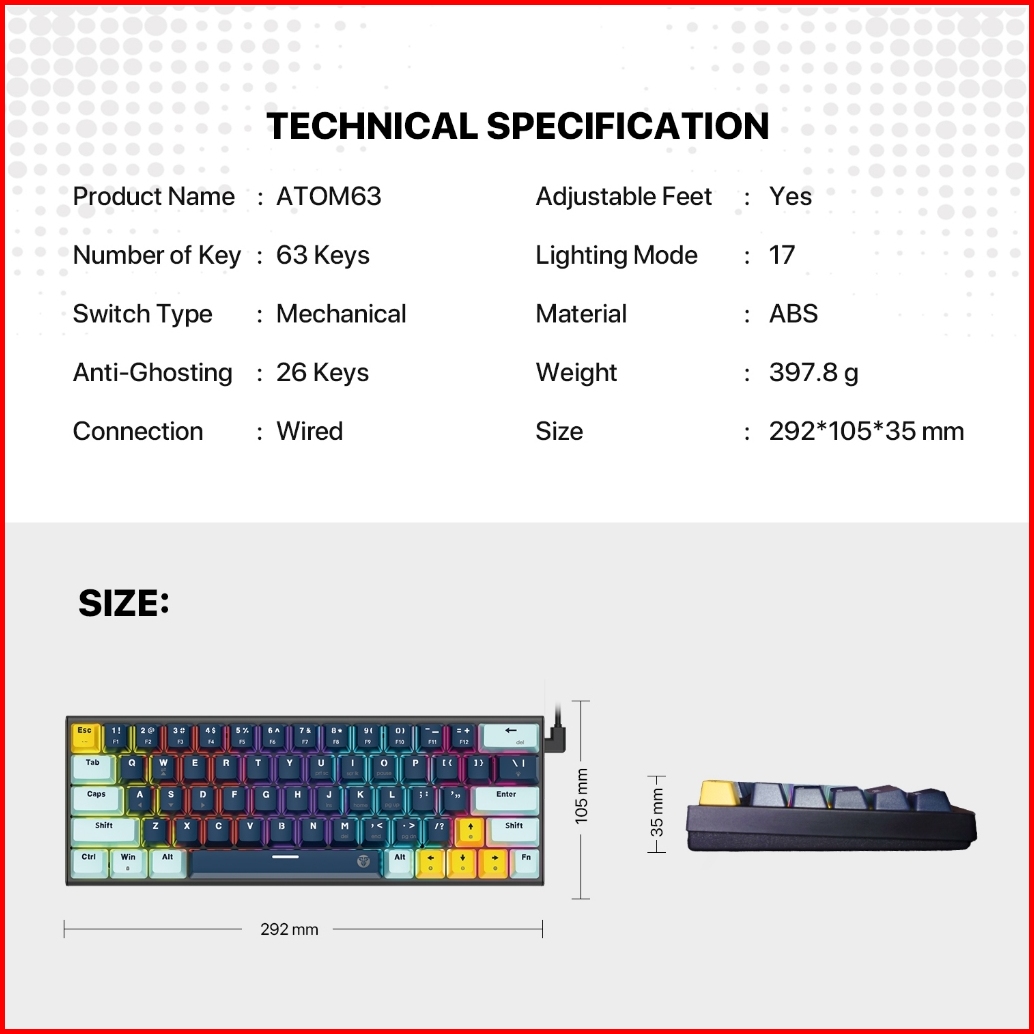 Fantech Atom Mizu Series Keyboard Mechanical Gaming Atom 63 81 96 Hotswappable 3 Pin