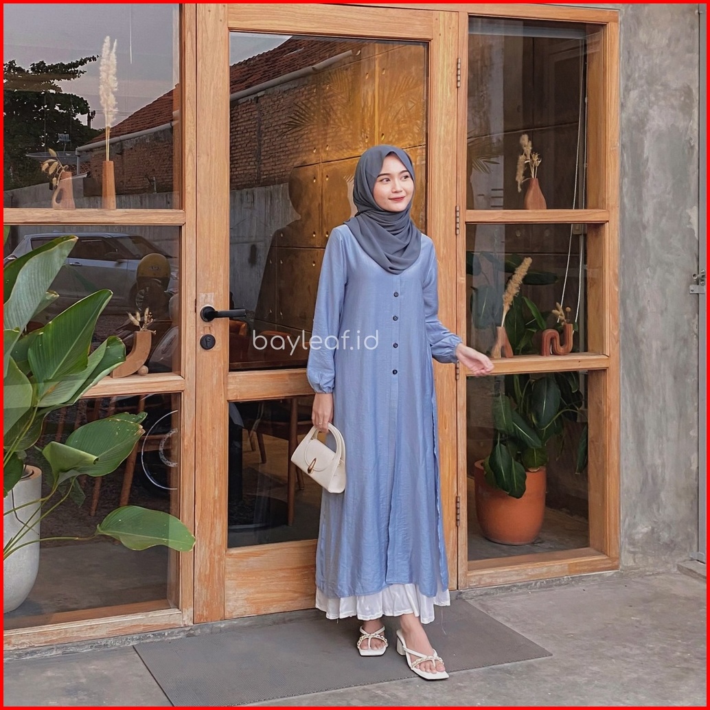 Bayleaf.id Syifa Daisy Midi Dress Basic Midress Linen Busui Friendly New Colour