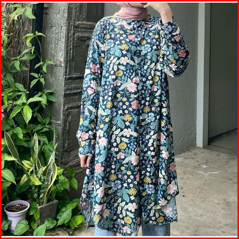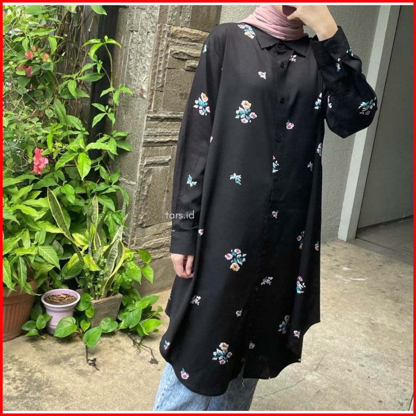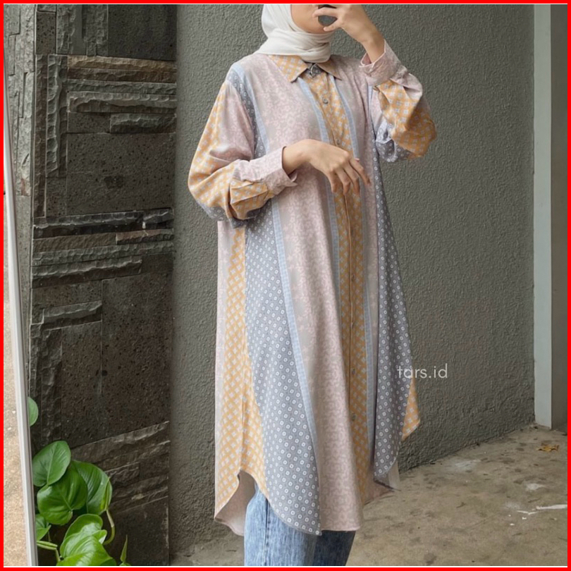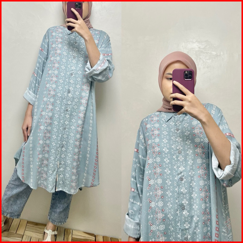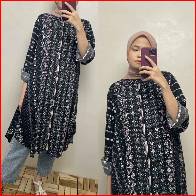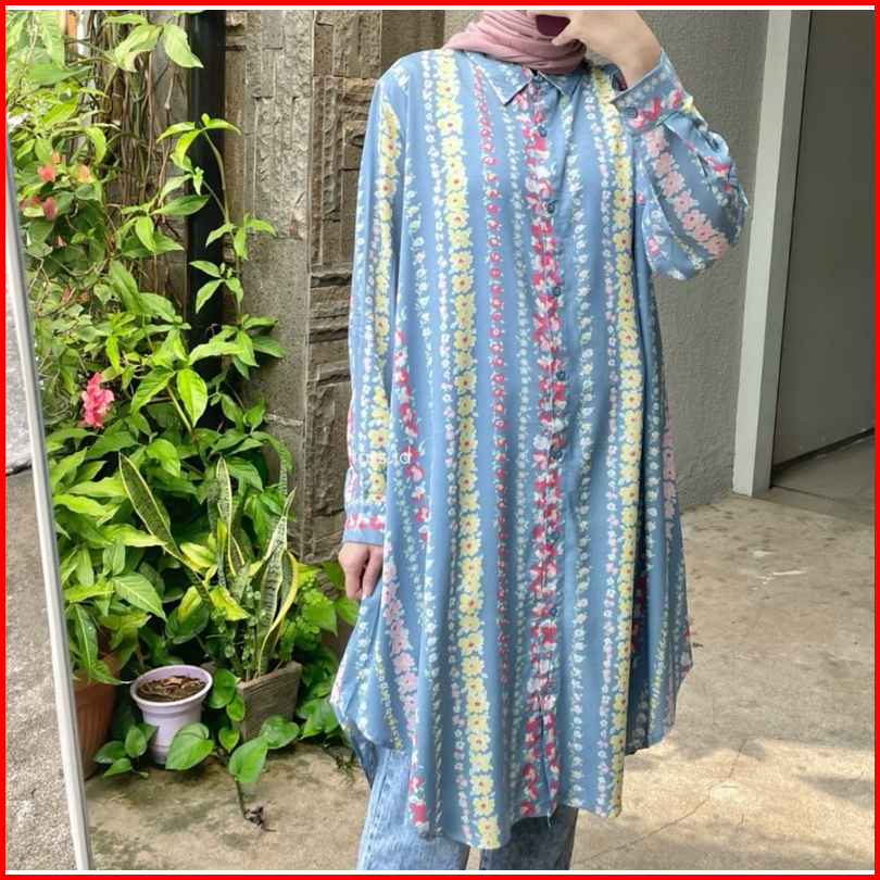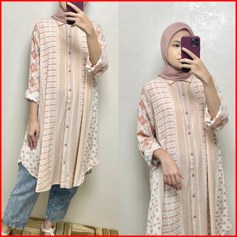 Long Shirt Tunik Motif Full Kancing Busui Friendly