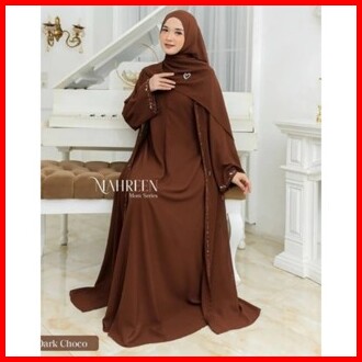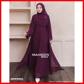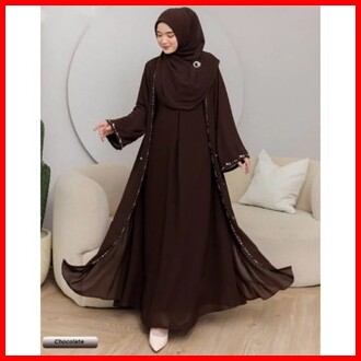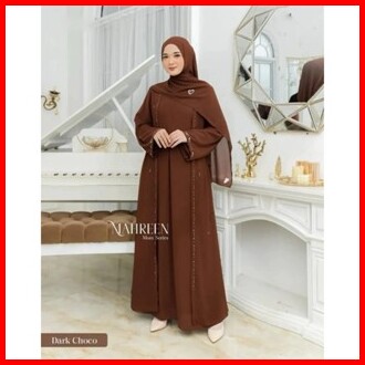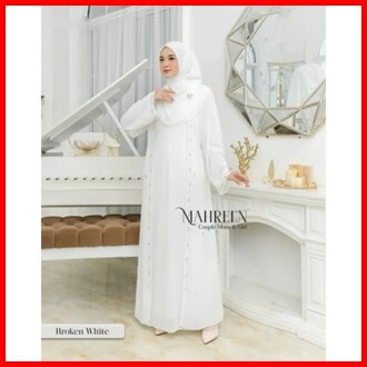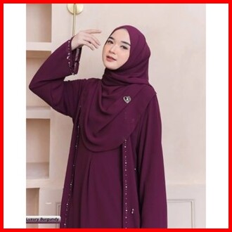 Luna Dress Lebaran Wanita Terbaru Gamis Abaya Polos Matt Ceruty Babydoll Aksen Payet Mutiara Import
