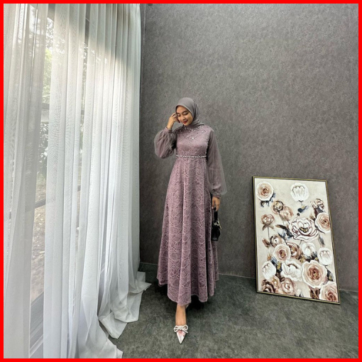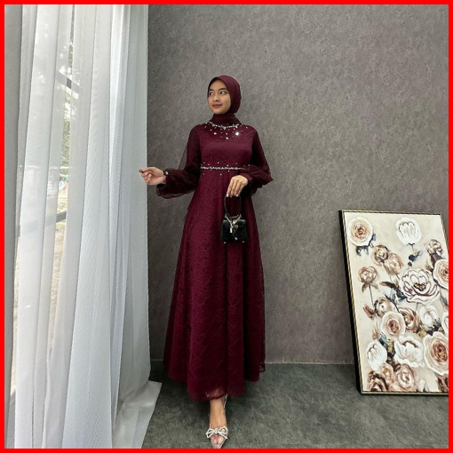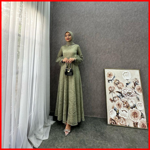 Dress Exclusive Gamis Nadin Lebaran Terbaru Tahun 2025 Dress Kondangan Gamis Brukat Maxi Pesta Lamaran Tunangan Kekinian