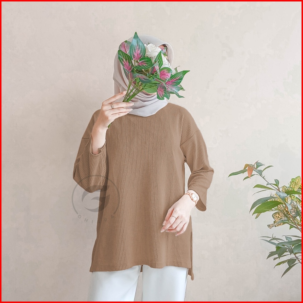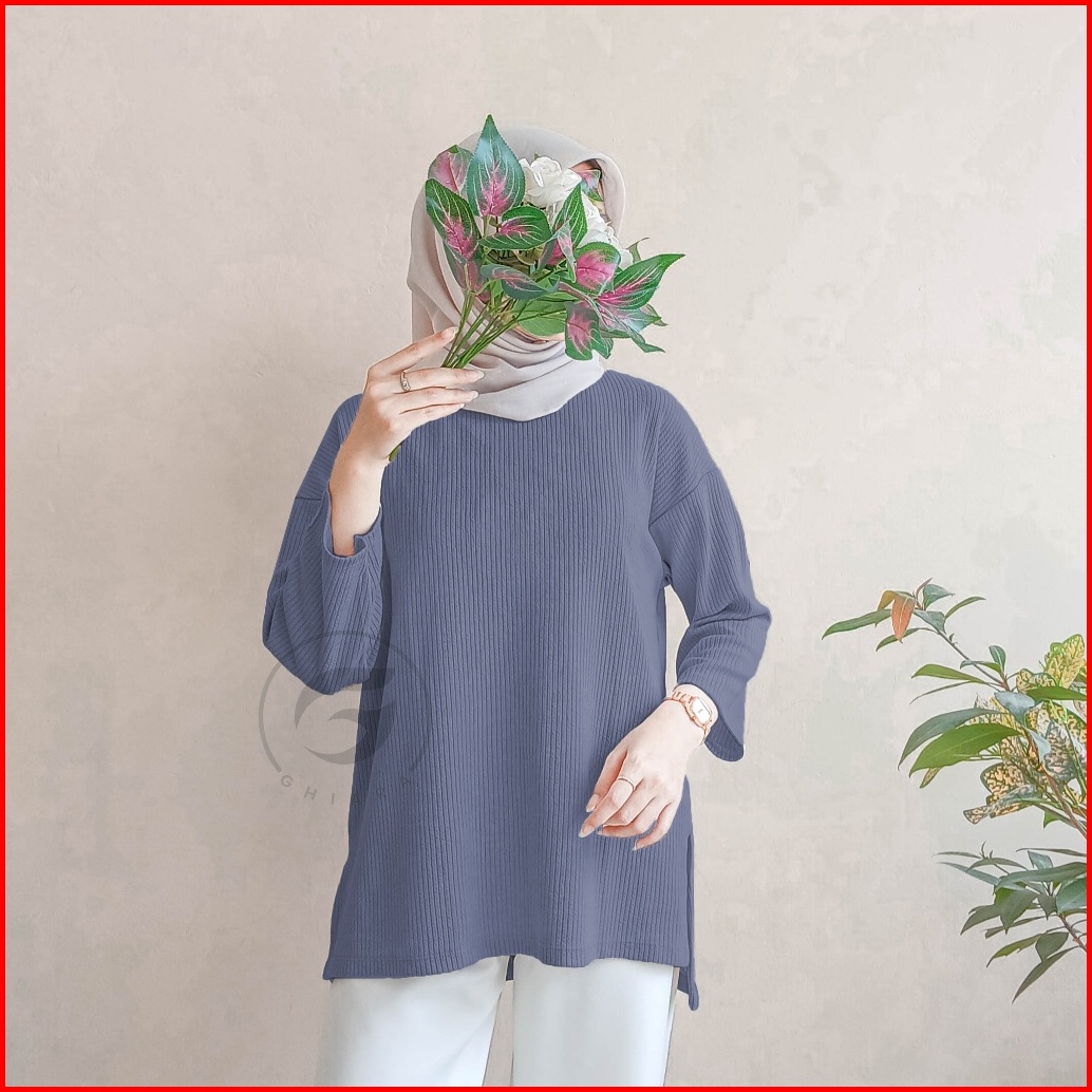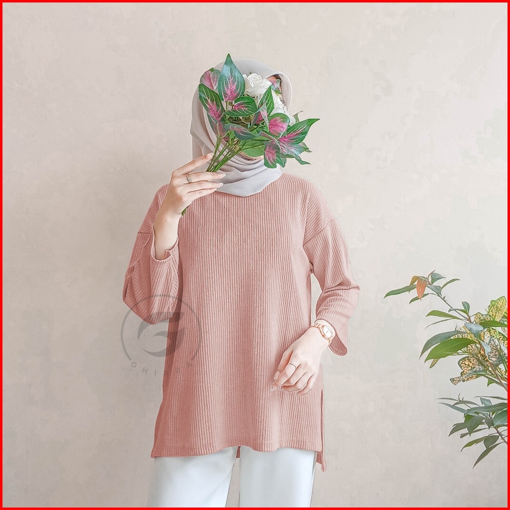 Baju Blouse Atasan Wanita Lengan Panjang Kekinian Knit Basic - Bl001