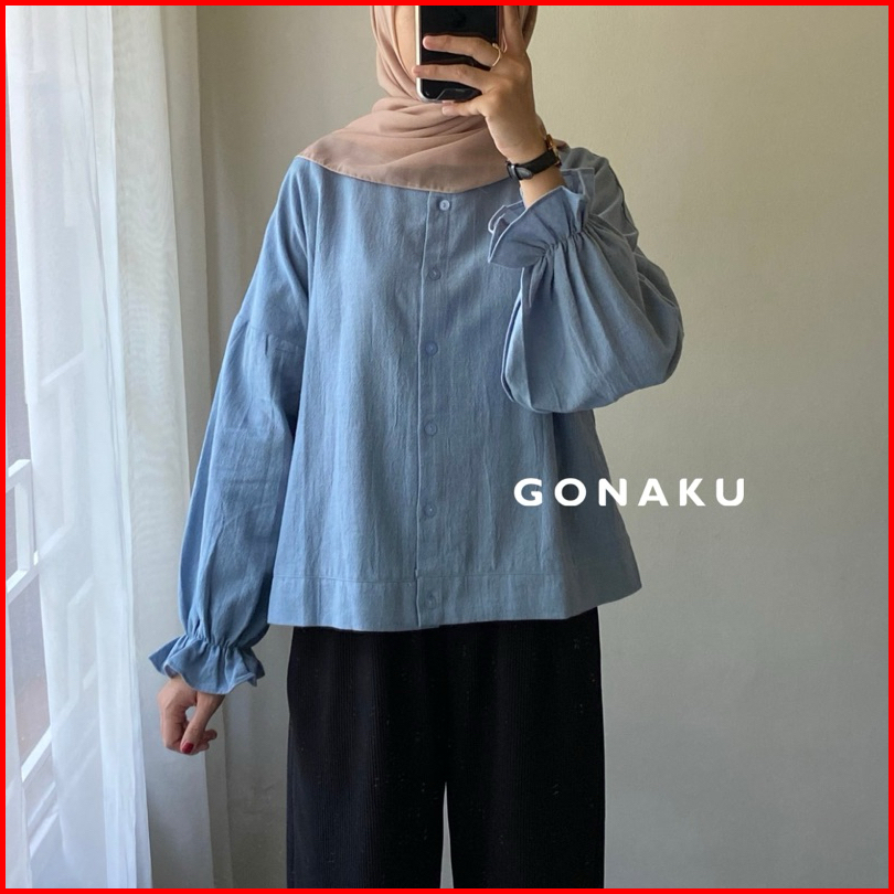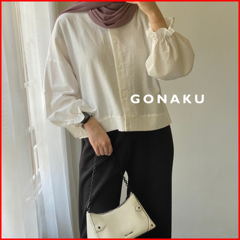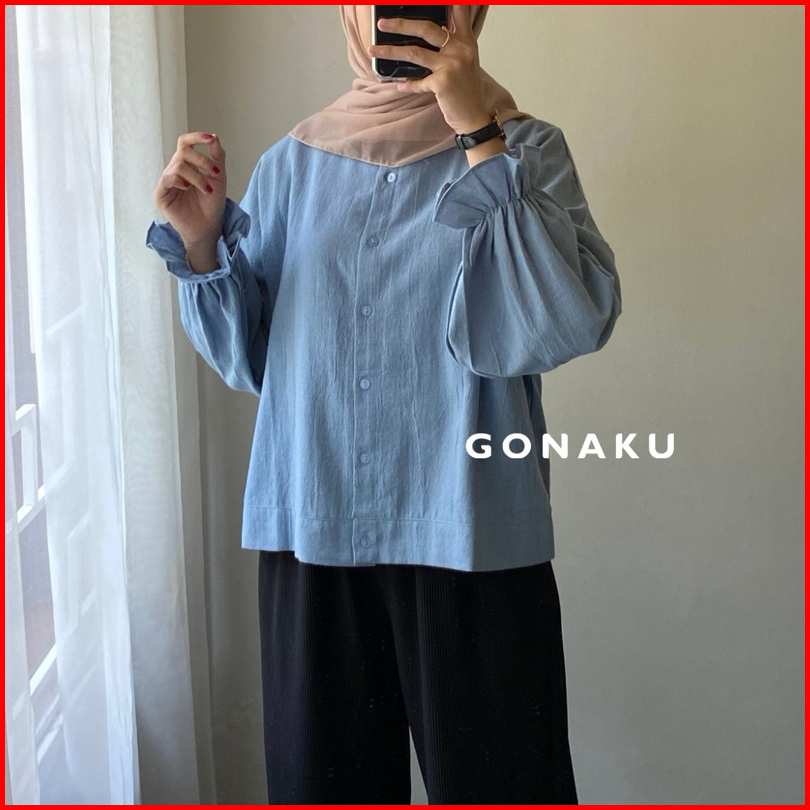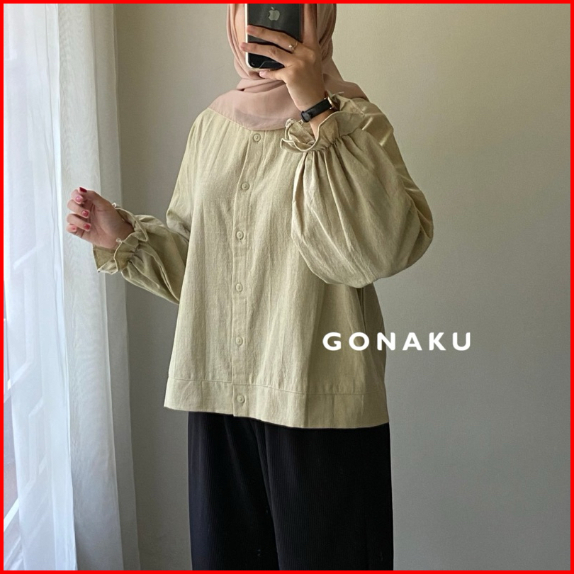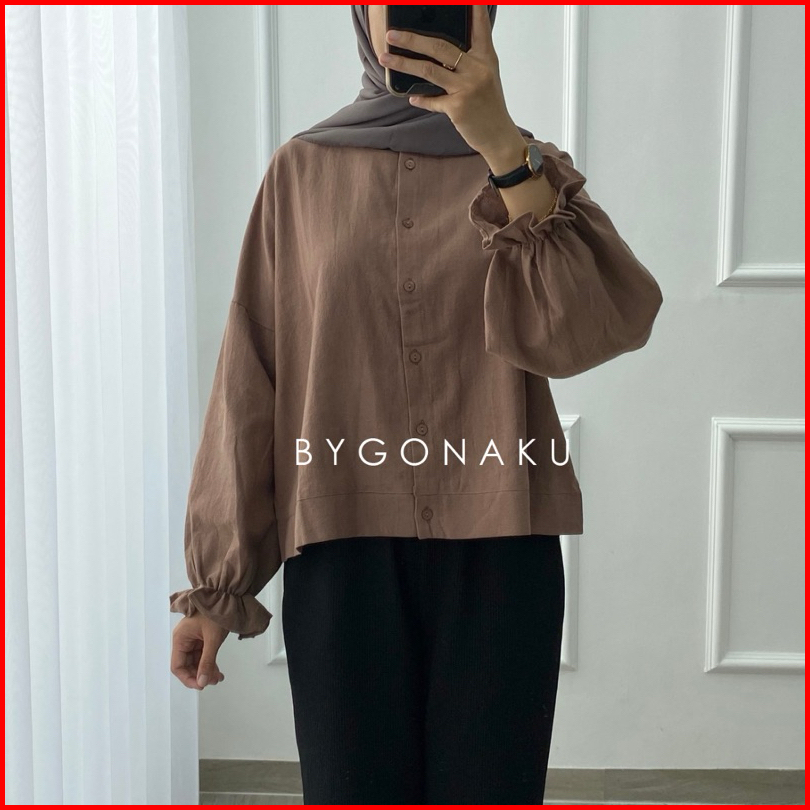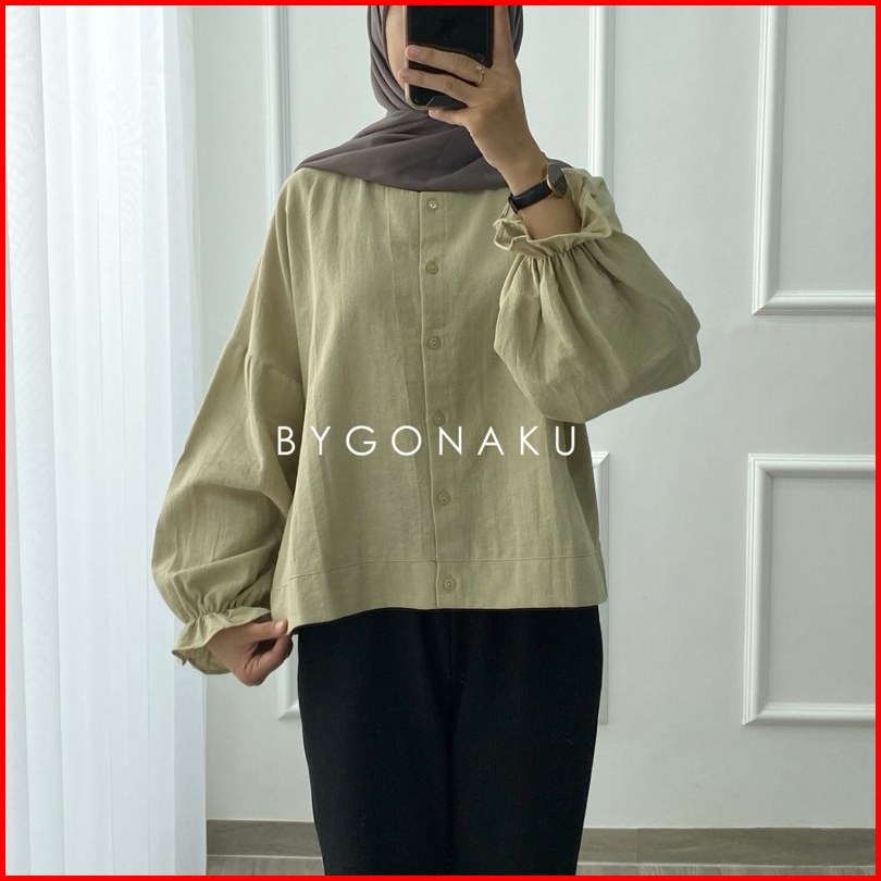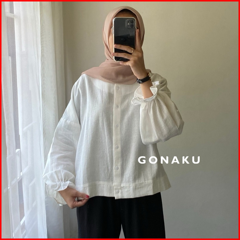 Gonaku Bella Oversized Crop Shirt Busui Friendly Crop Shirt Outer Linen Outer Crop Kemeja Linen Bigsize Shirt Kemeja Wan