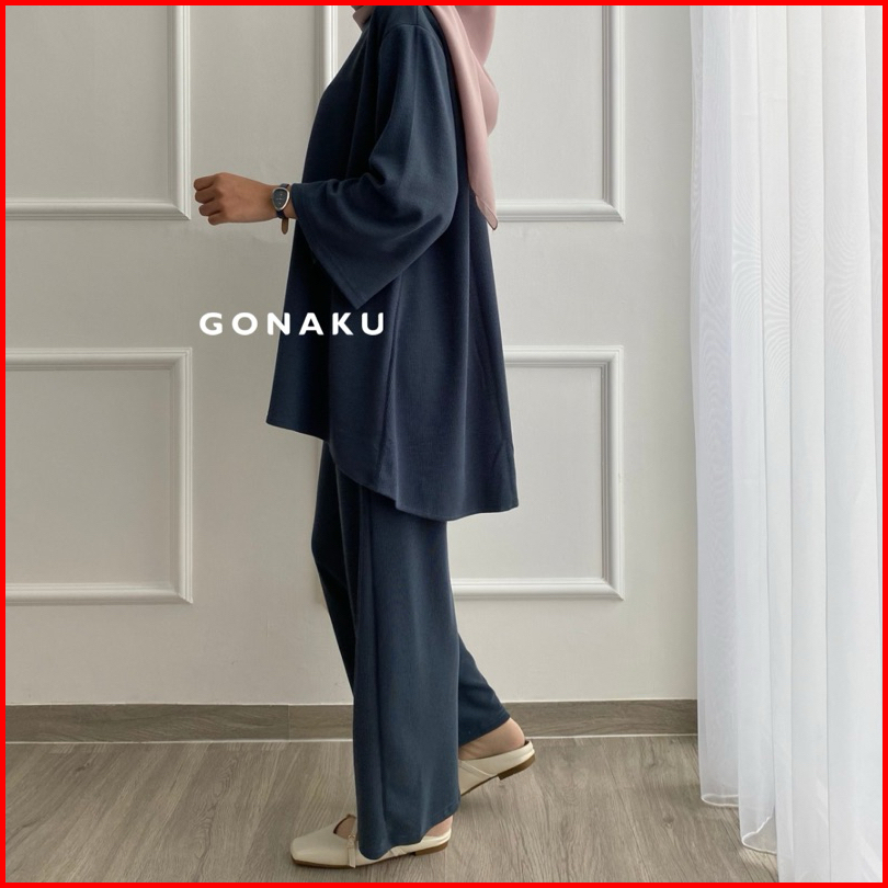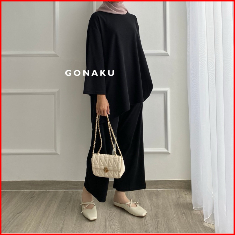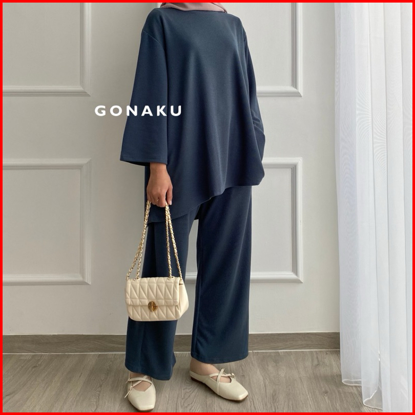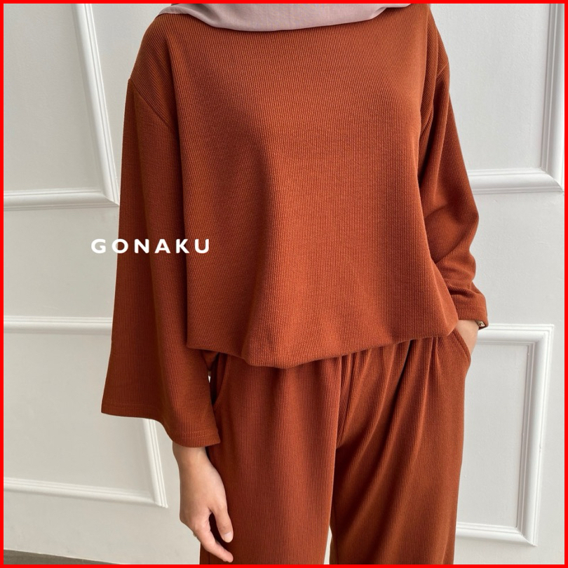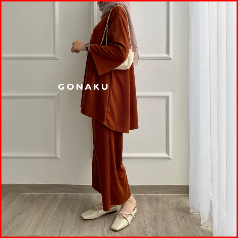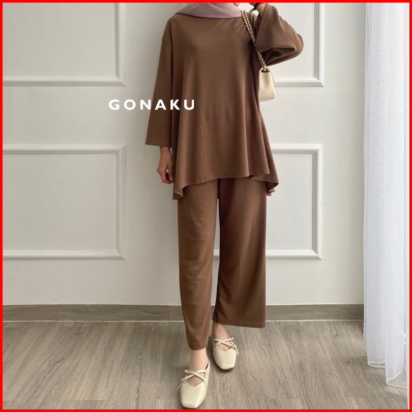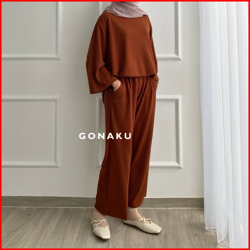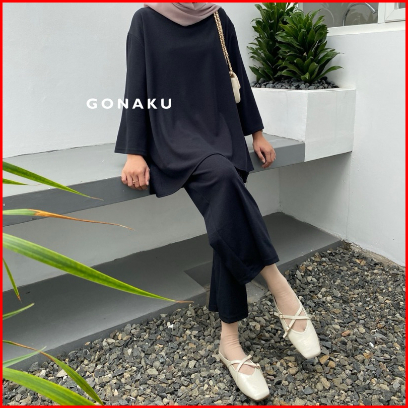 Gonaku Clara Knit Pleats Oneset By Gonaku Setcel Murah Setelan Wanita Baju Wanita Kulot Pleats One Set Atasan Celana