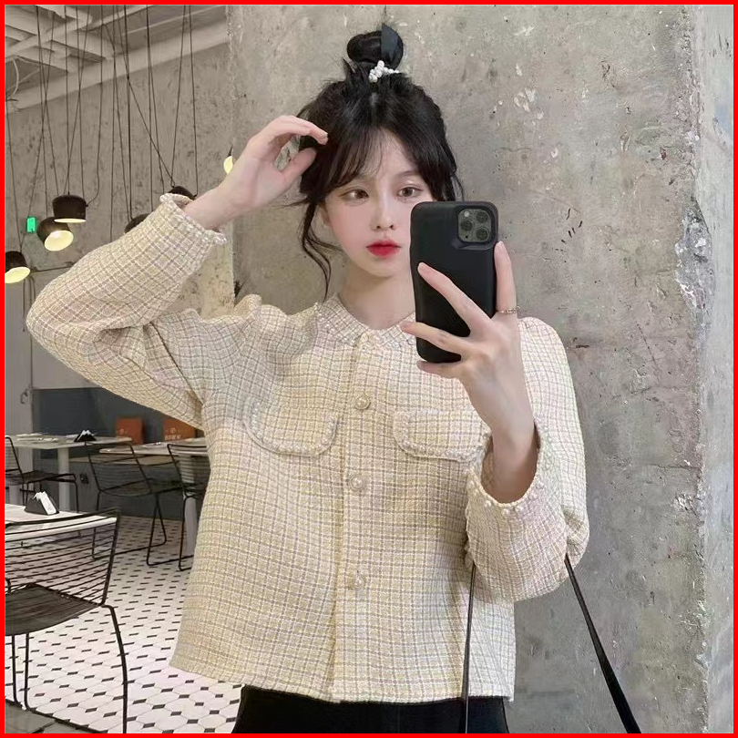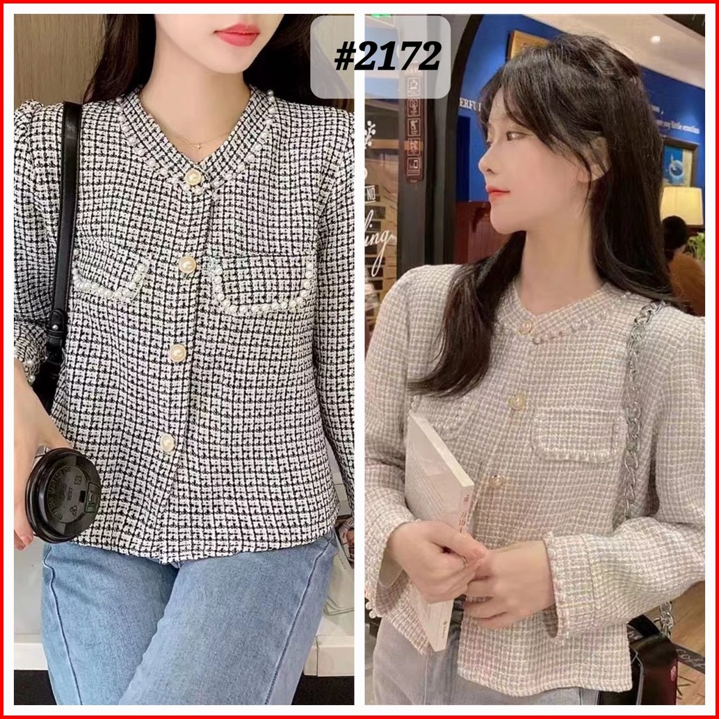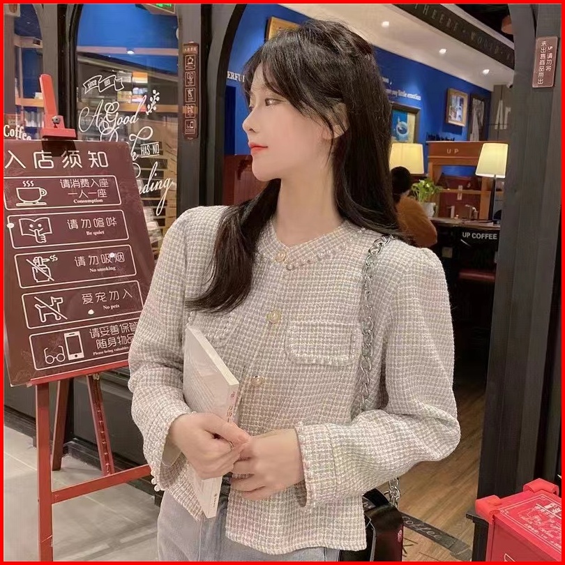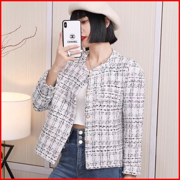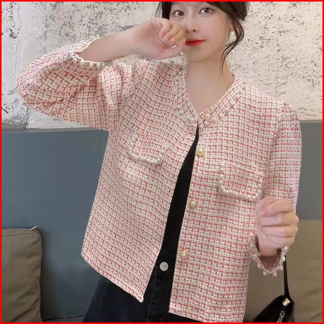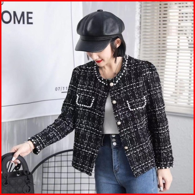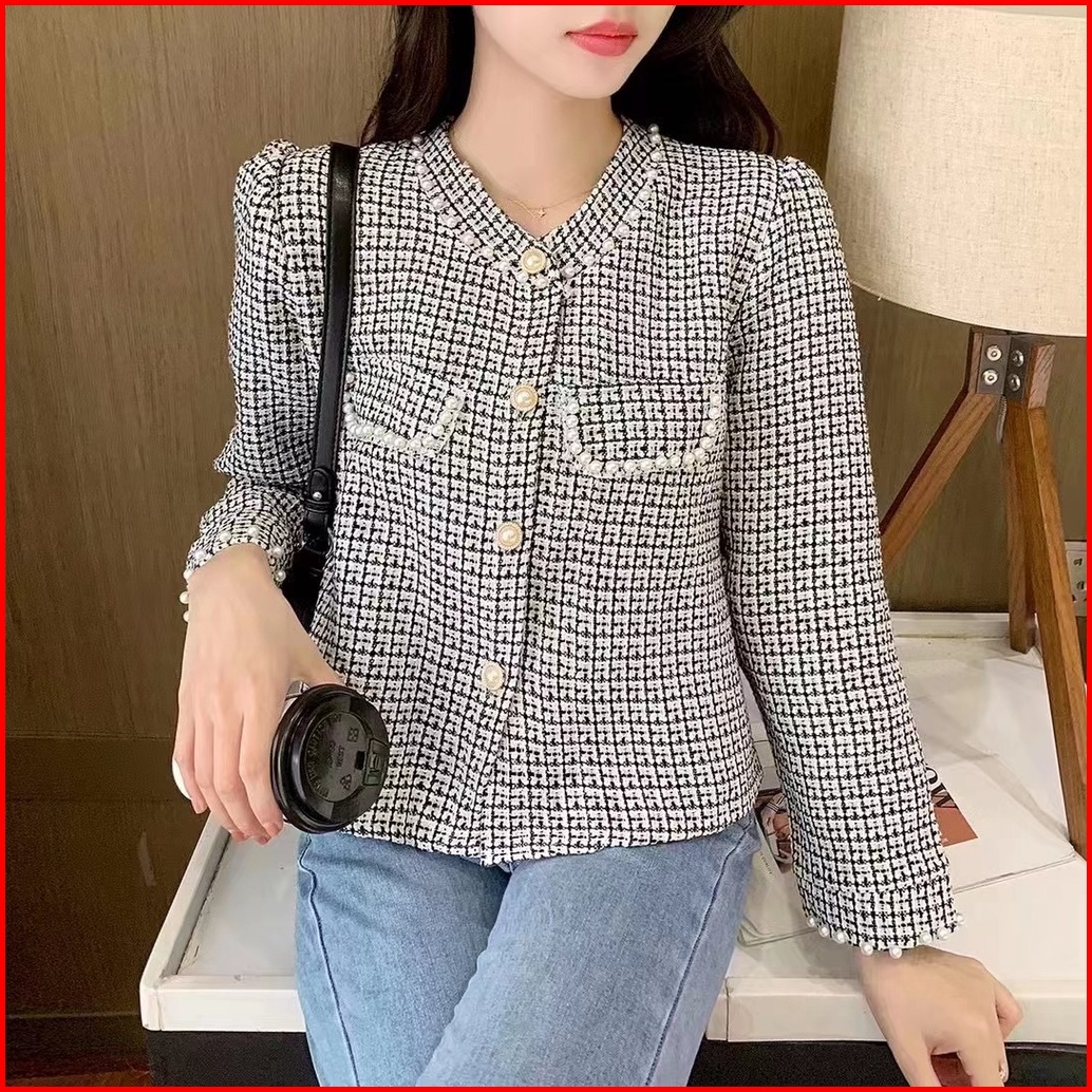 Alice Tweed Blazer Knit Rajut Kotak-kotak Import