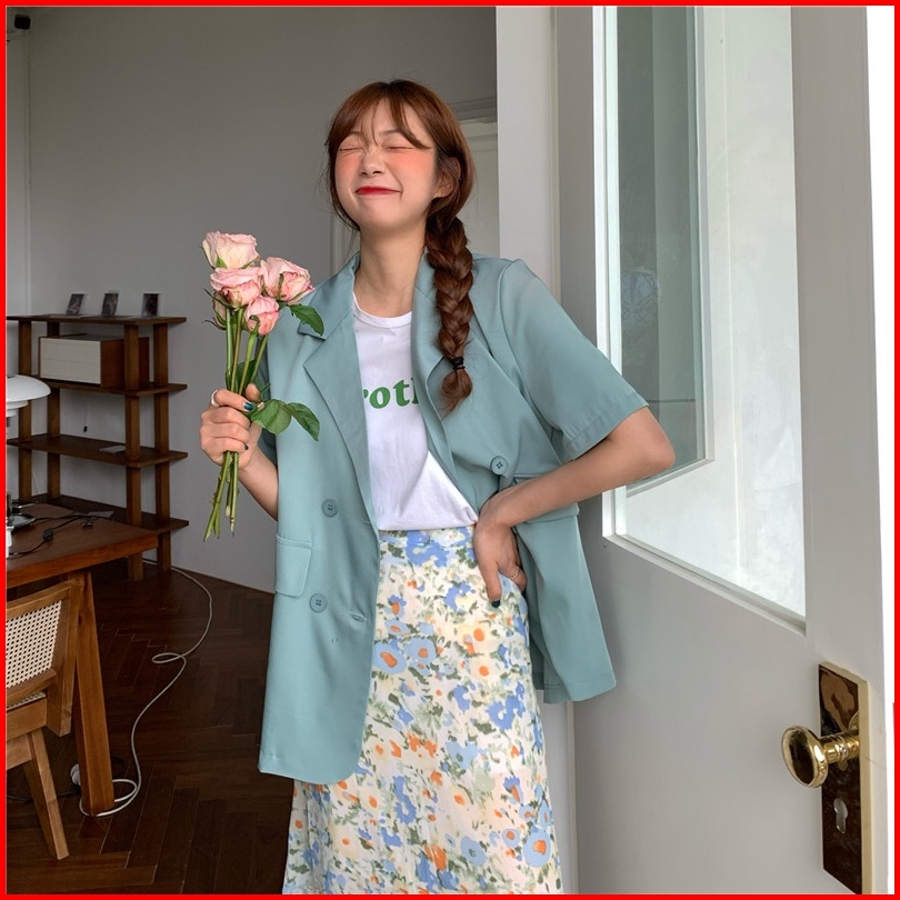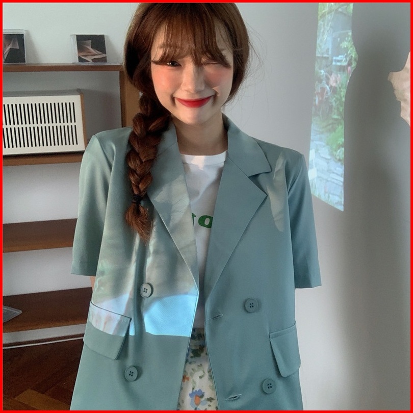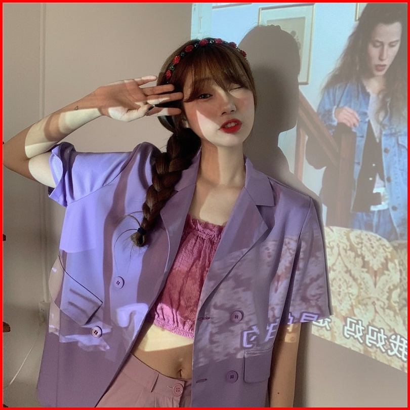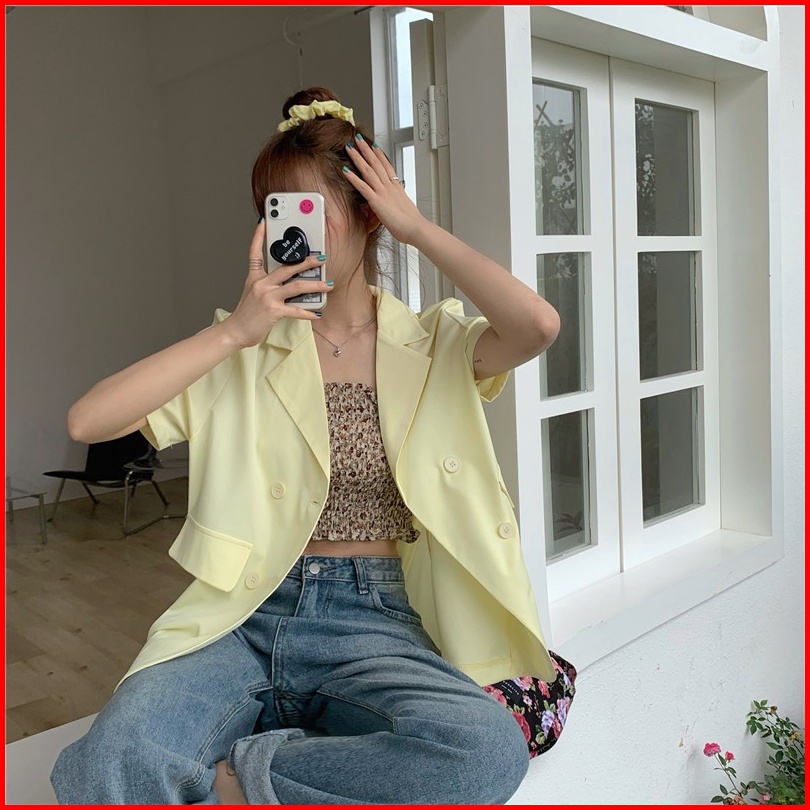 Hijau Biru Kuning Ungu Korea Blazer Wanita Lengan Pendek Setelan Jas Blazer Women Outer 2023t Murah