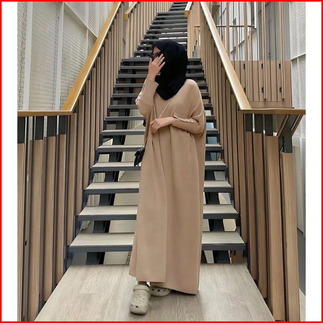 Abaya Gamis Batwing Knit Dress Busui Umroh Lebaran Haji Daily V2