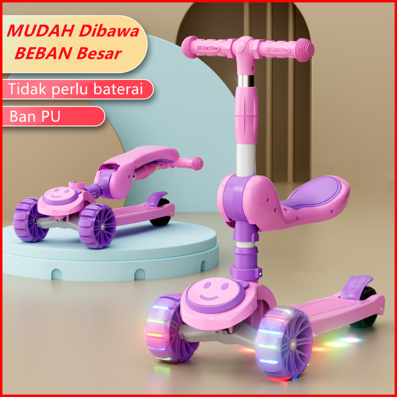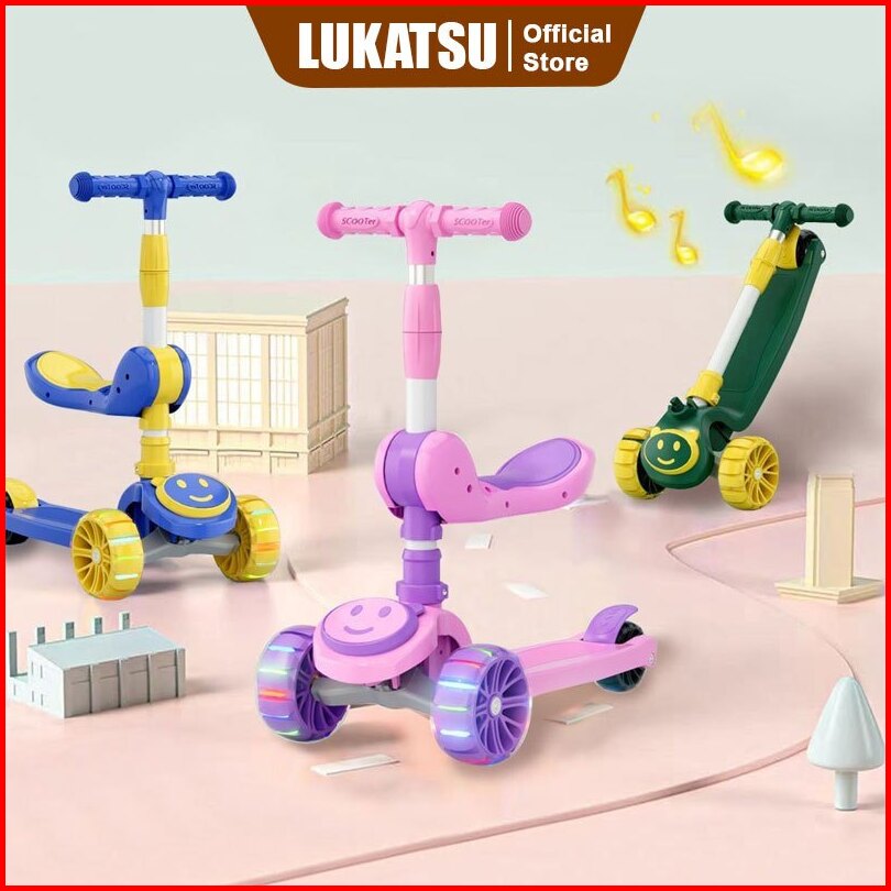 Lukatsu Mainan Skuter 2in1 Skuter Anak Roda 3 Dengan Dudukan Lampu Pada Roda 2-12tahun