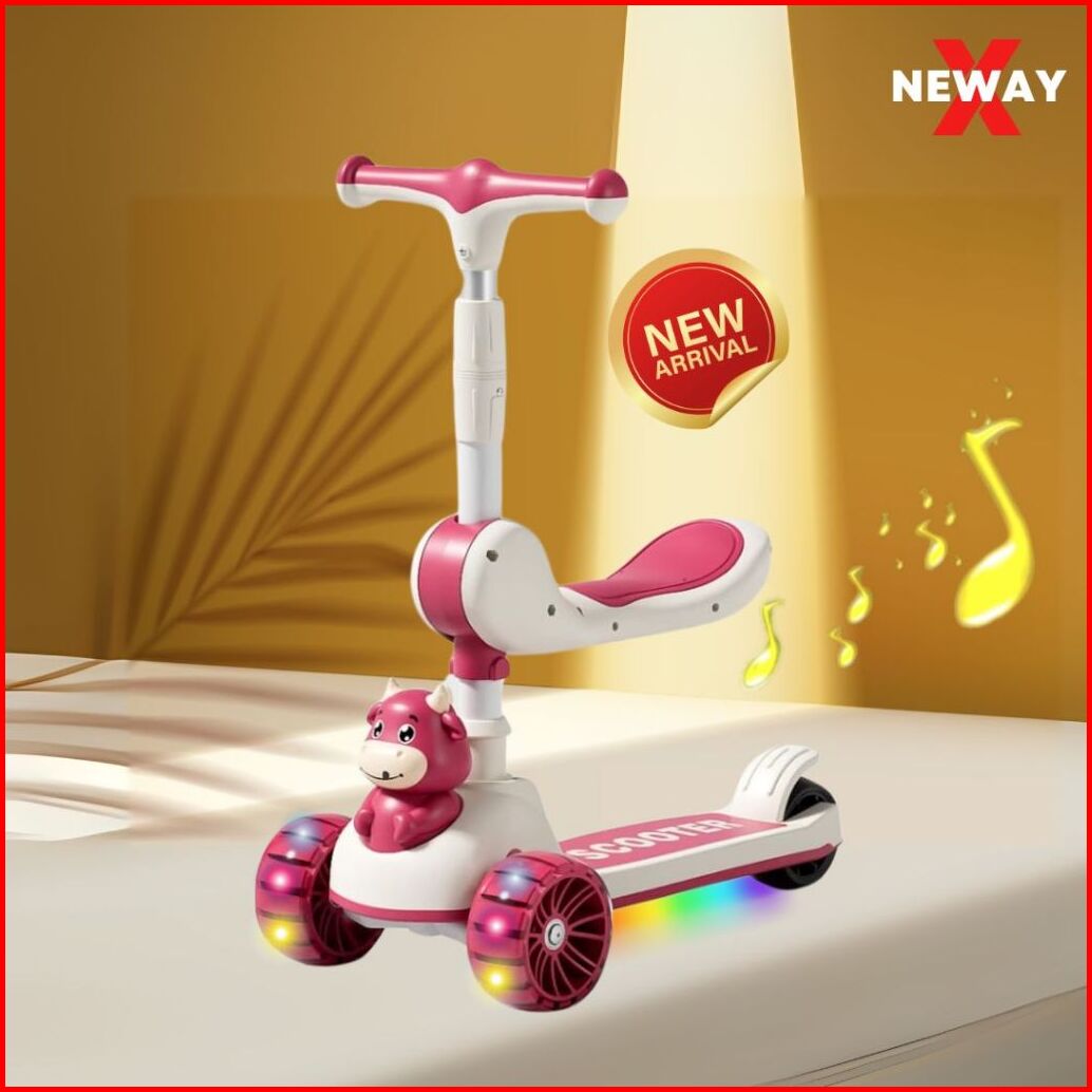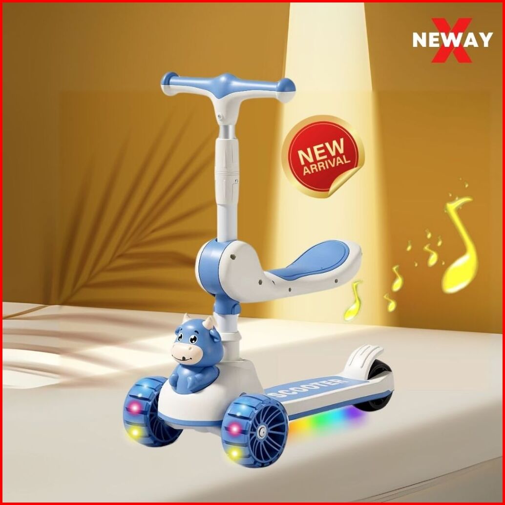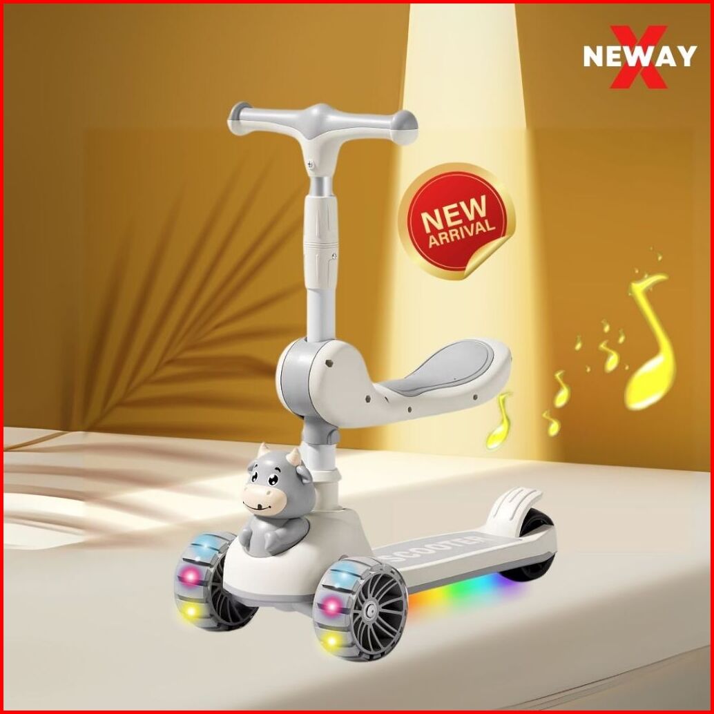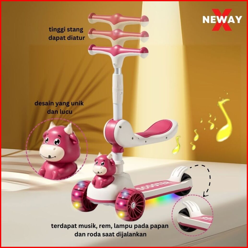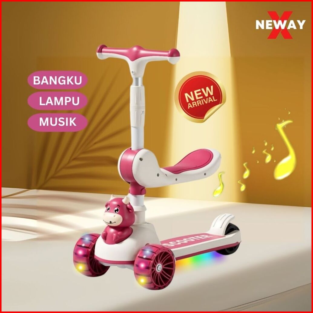 Scooter Mainan Anak Baby Cow 2 In 1 Skuter Lipat Duduk Roda Tiga Lampu Musik Bangku Toys Sapi Lucu