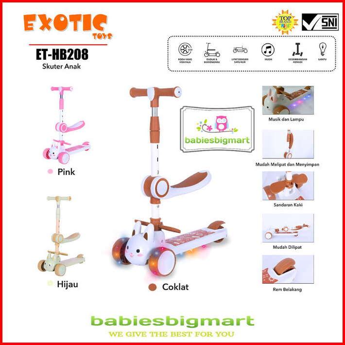 Scooter Mainan Anak Exotic Et Hb 208 Bisa Duduk Berdiri Musik Lampu Scooter Lipat Skuter Sekuter