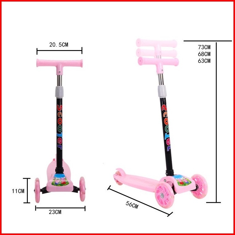 Bs563 Scooter Roda Lampu Led Skuter Otoped Anak Scooter Kickboard Skuter Anak 3 Roda Skuter Lipat