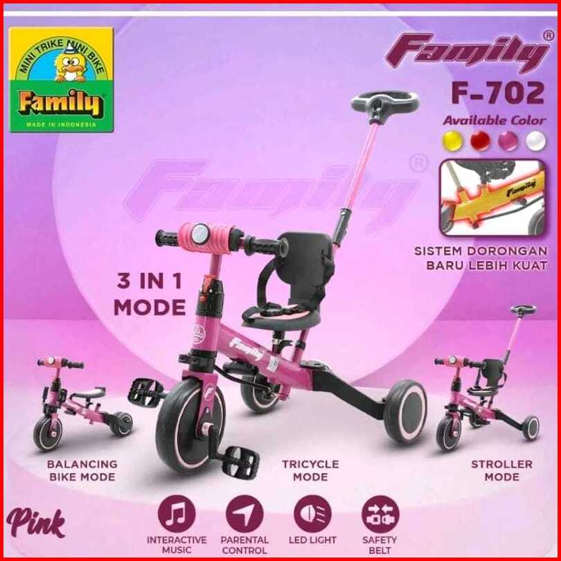Sepeda Anak Roda Tiga Tricycle Balance Bike Family F-701 F-702 3in1 Exotic Et-709-7 Et-7097 Et-714 Pmb Nuwa T-32 Aviator
