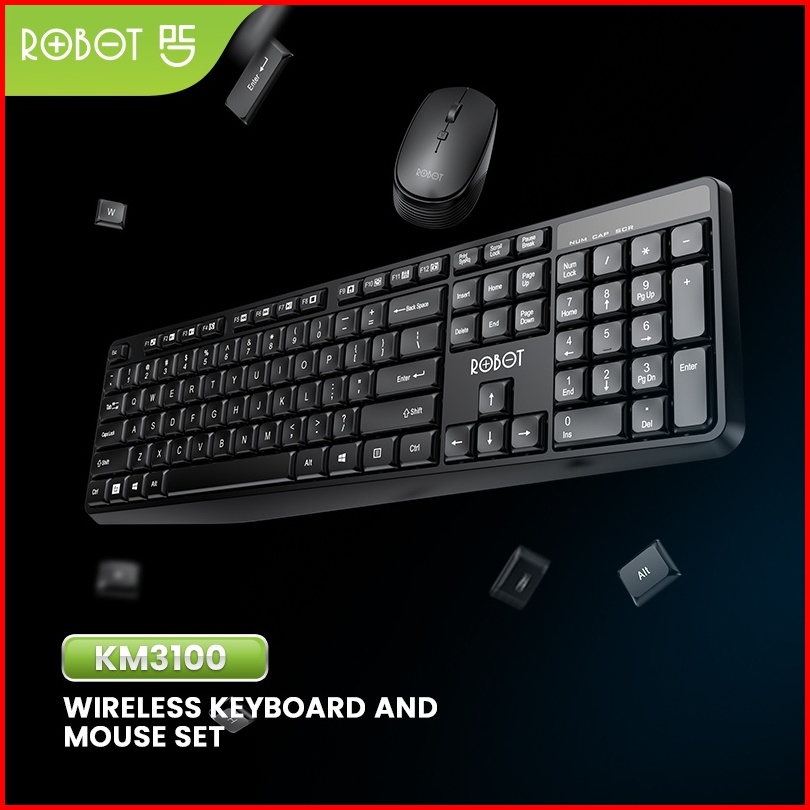 Best Seller Robot Combo Keyboard Dan Mouse Wireless Compact Silent Tidak Berisik Original Tipe Km3100 Garansi 1 Tahun