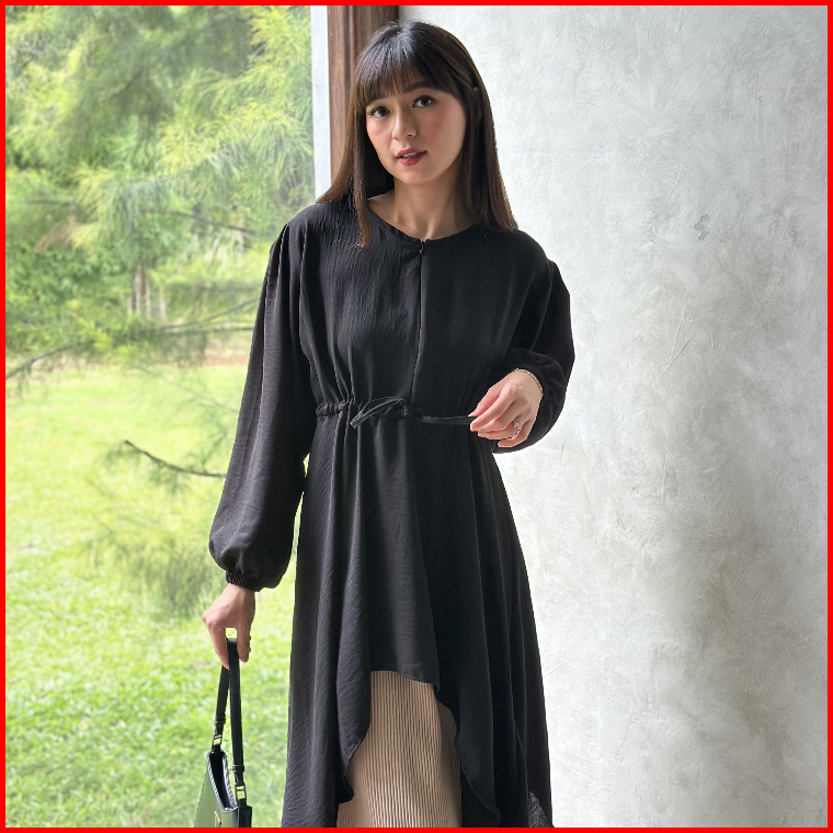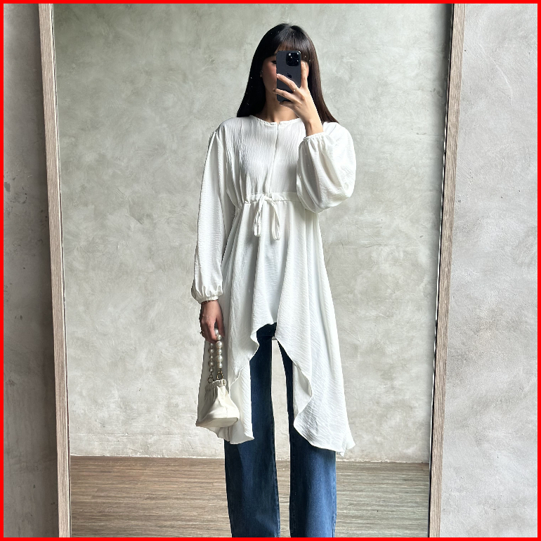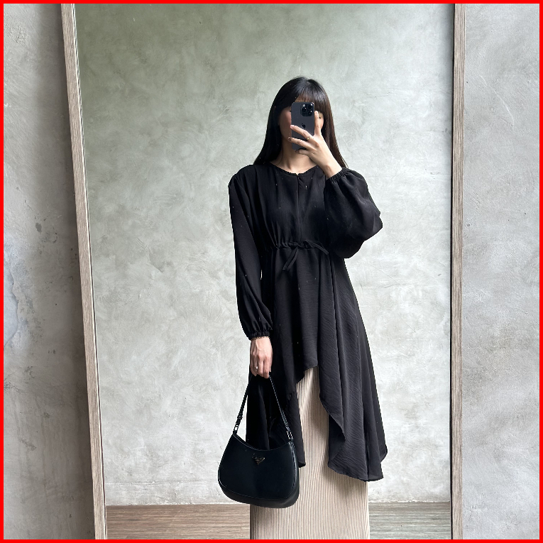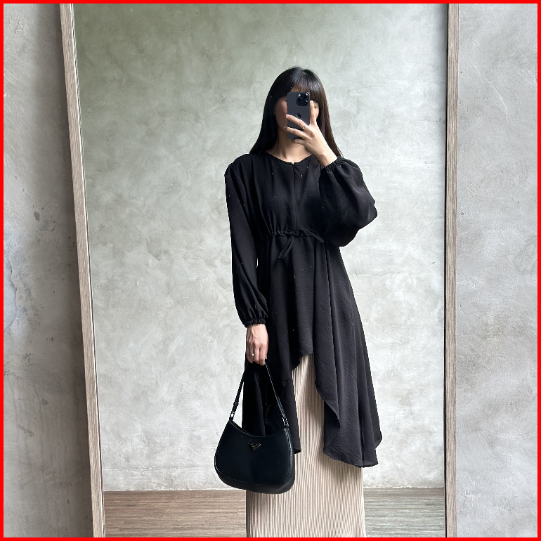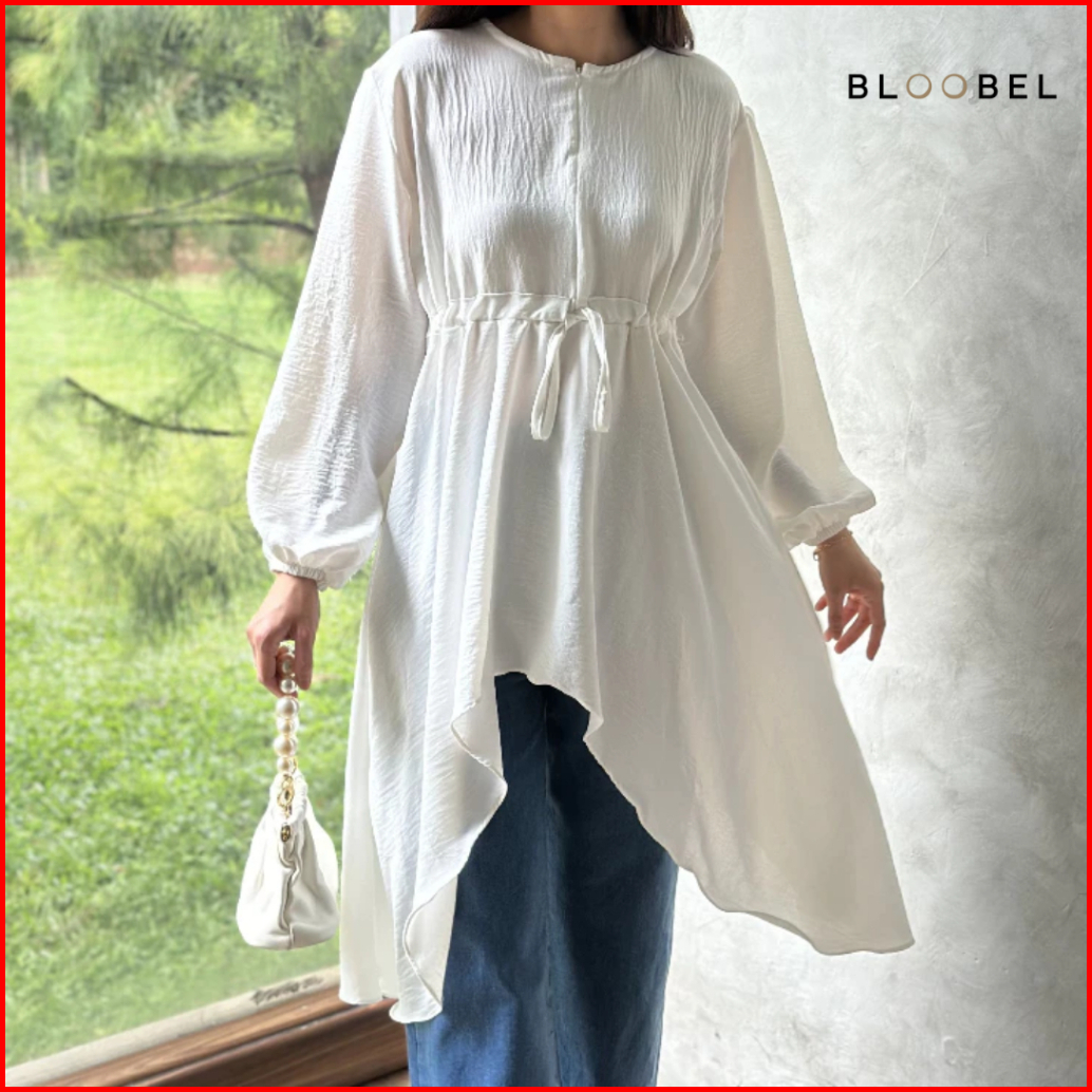 Bloobel - Ivy Top Bpj100 Tunik Crinkle Atasan Wanita Blouse Muslim Tali Depan Lengan Kerut Bahan Premium Lebaran Idul Fi