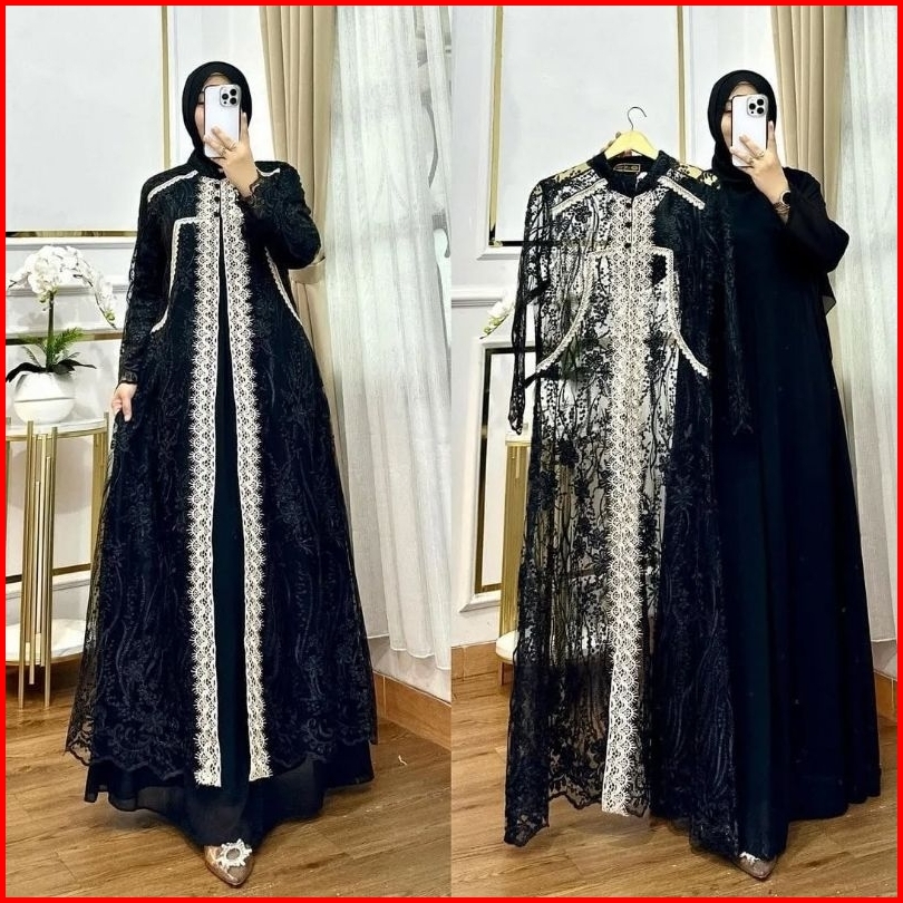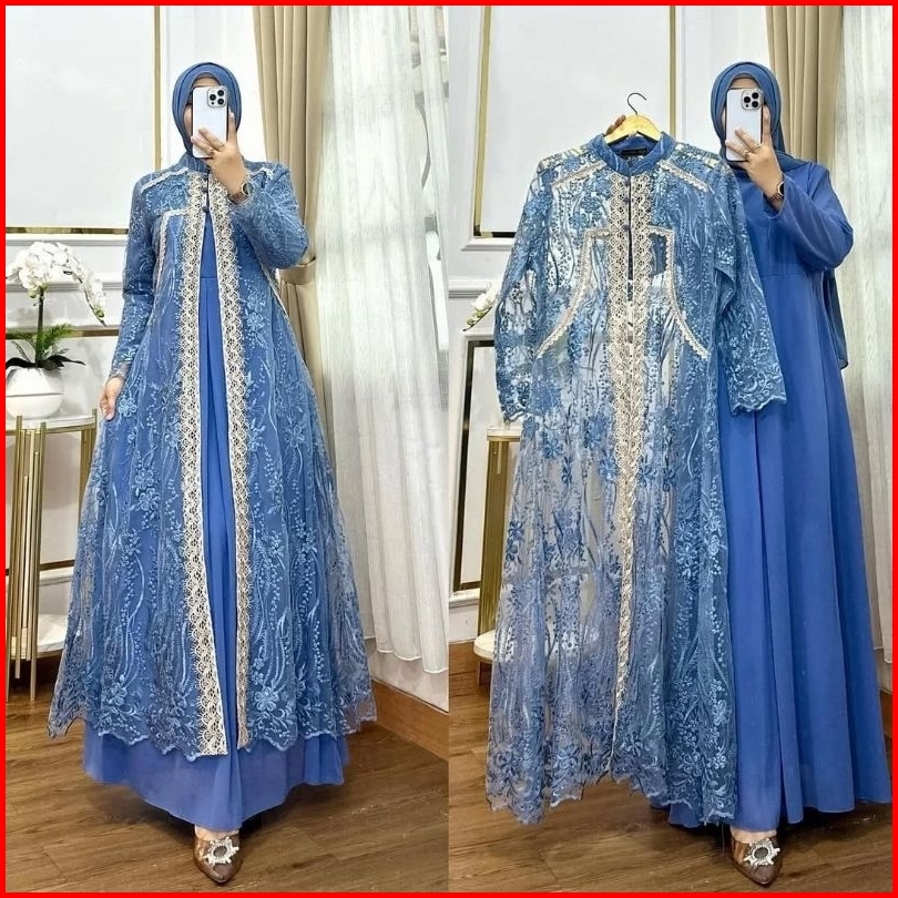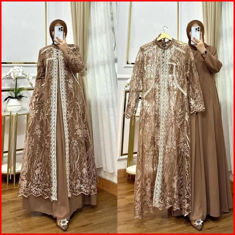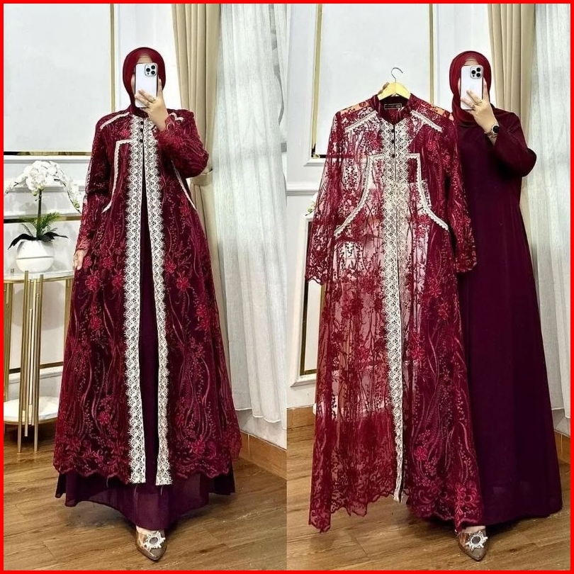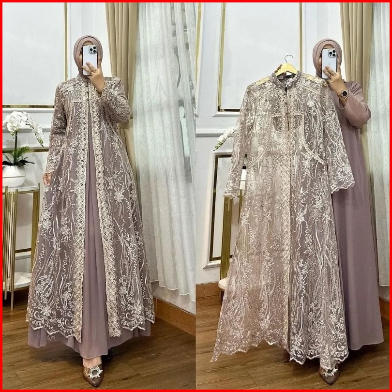 Gamis Dress Muslimah Brokat Premium Wanita Mewah Elegan Kekinian Inner Outer Terbaru2025 Baju Pesta Kondangan Termewah A