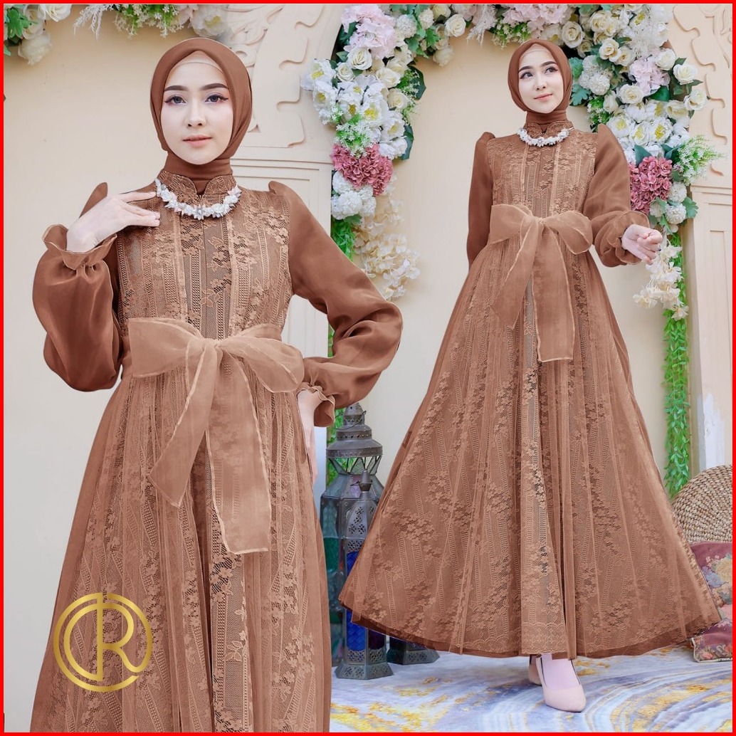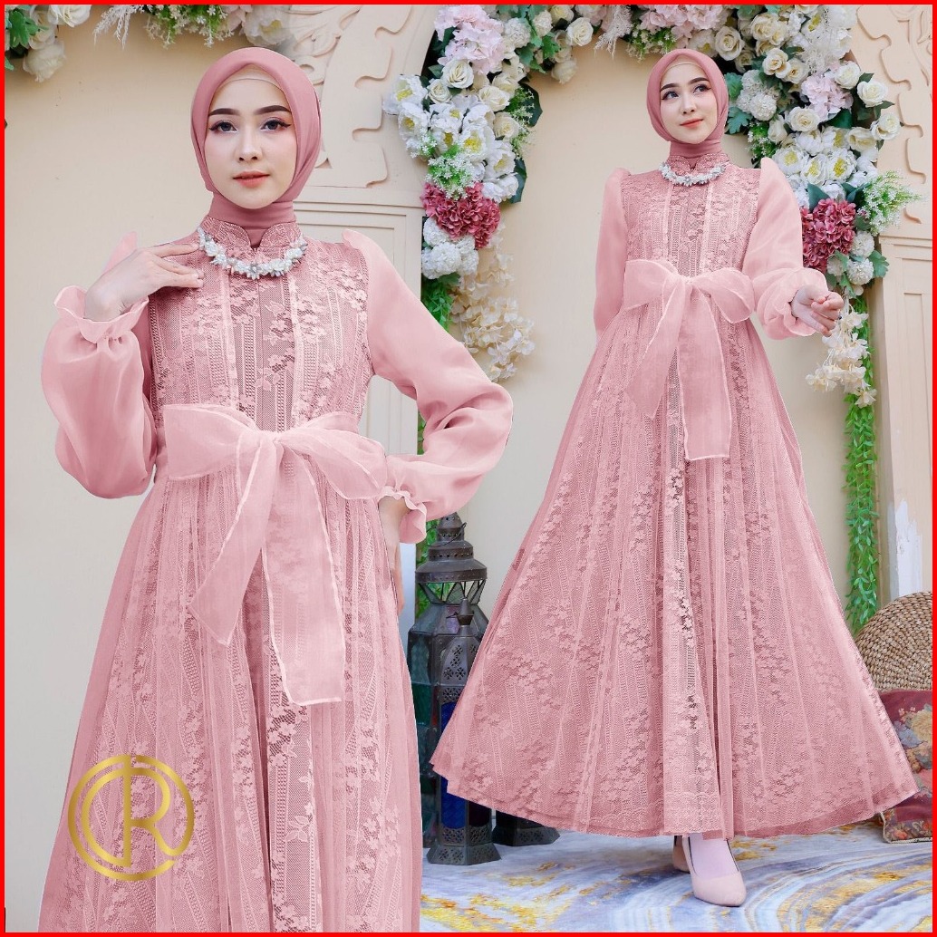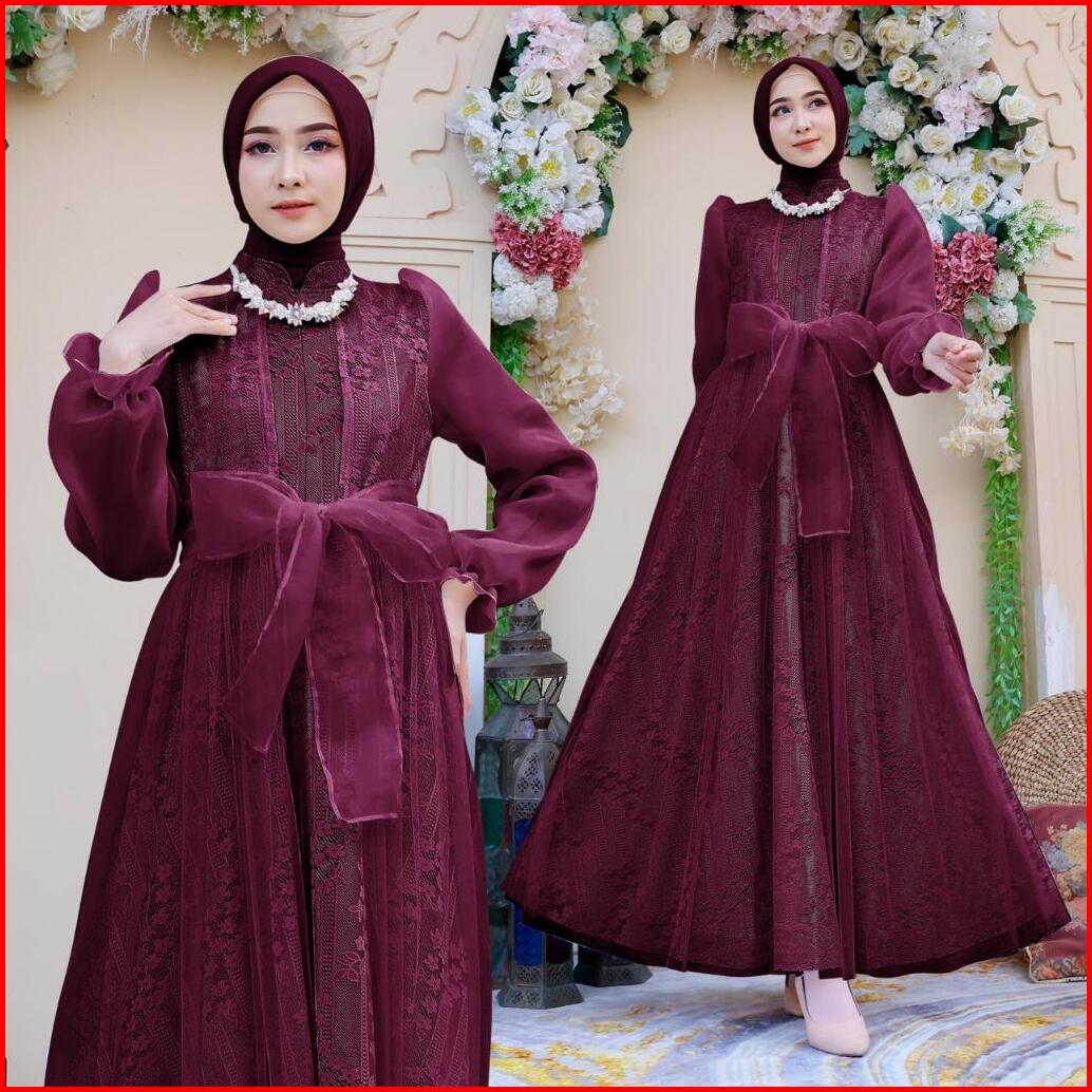 Aurora Boutiq Maxi Davina M L Xl 8 Warna Busui Friendly Terbaru Gamis Brukat Organza Fashion Busana Muslim Wanita Lebara