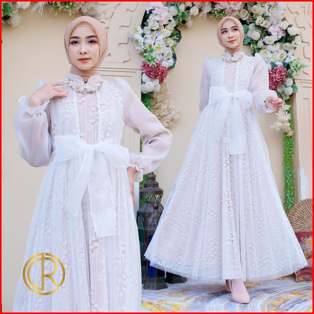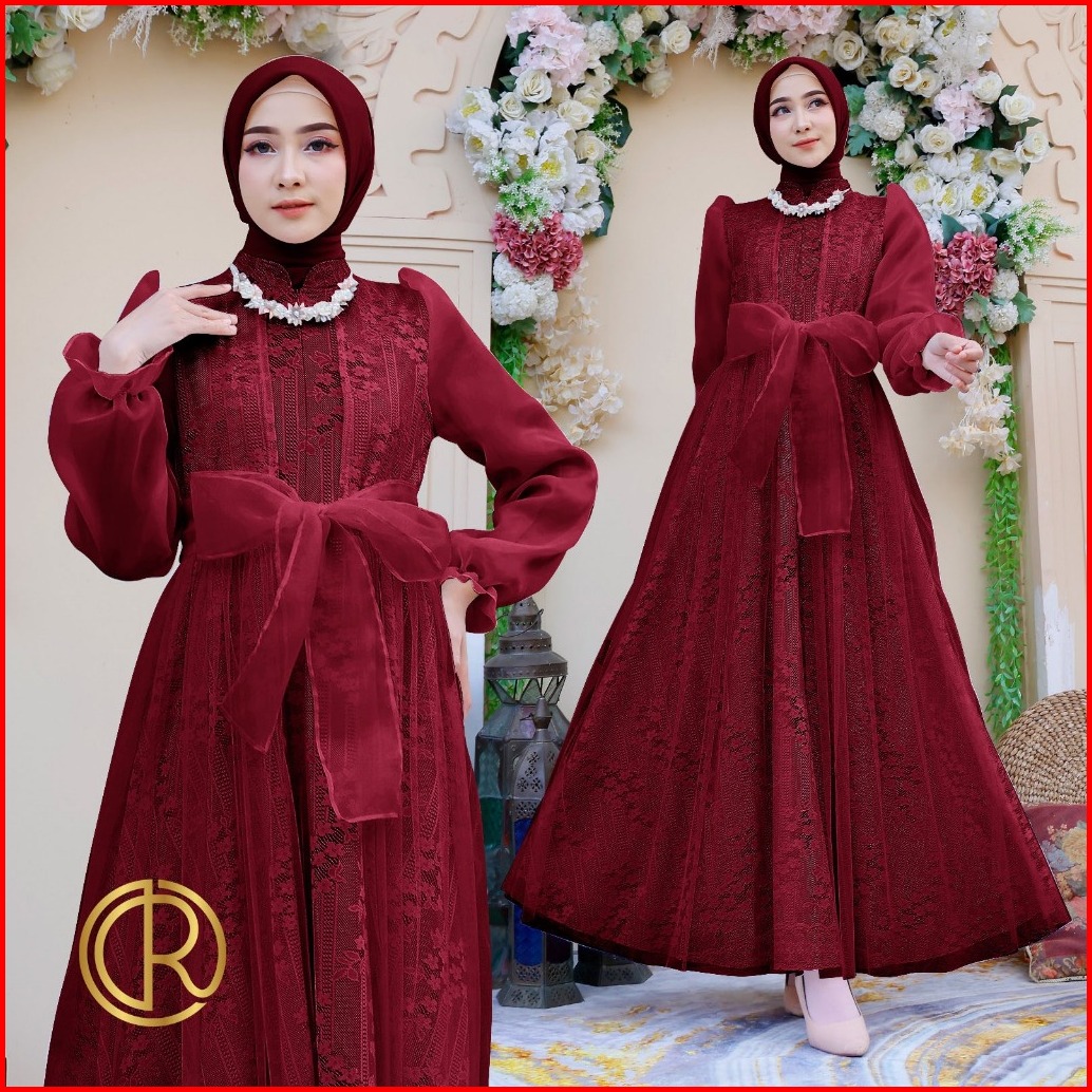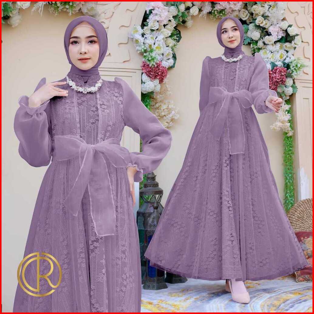 Aurora Boutiq Maxi Davina M L Xl 8 Warna Busui Friendly Terbaru Gamis Brukat Organza Fashion Busana Muslim Wanita Lebara