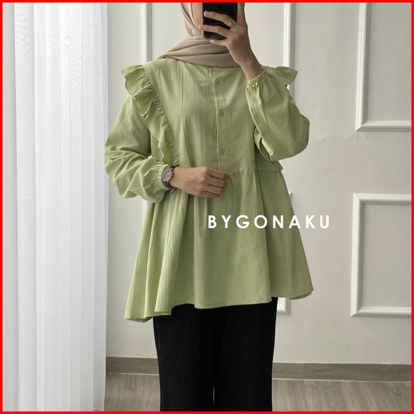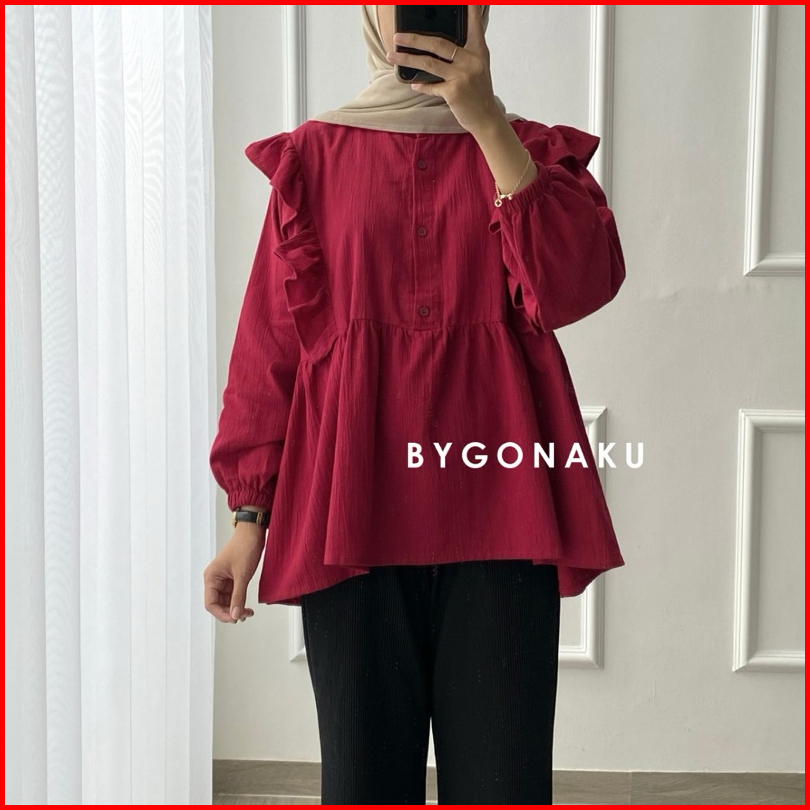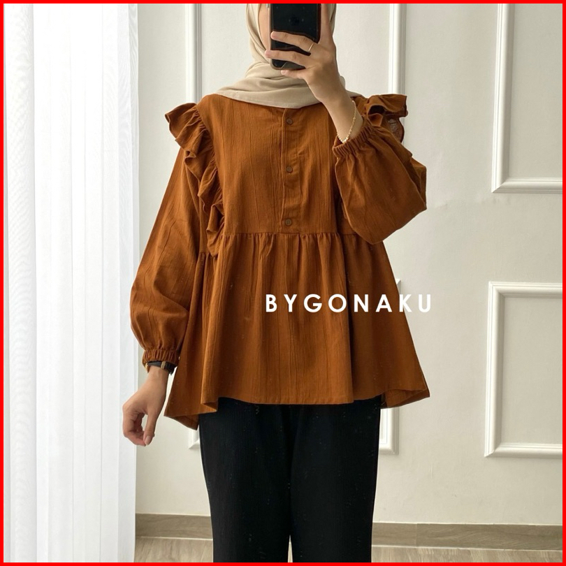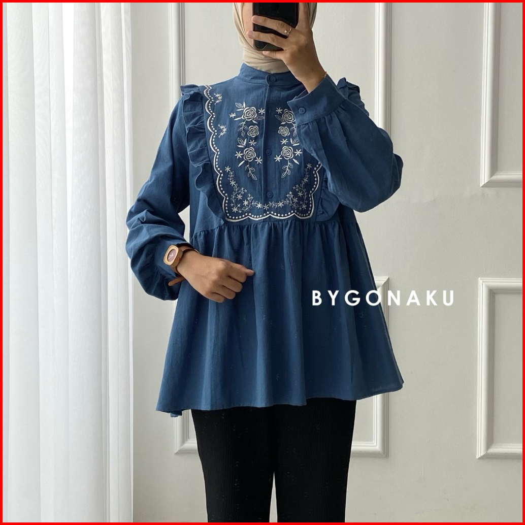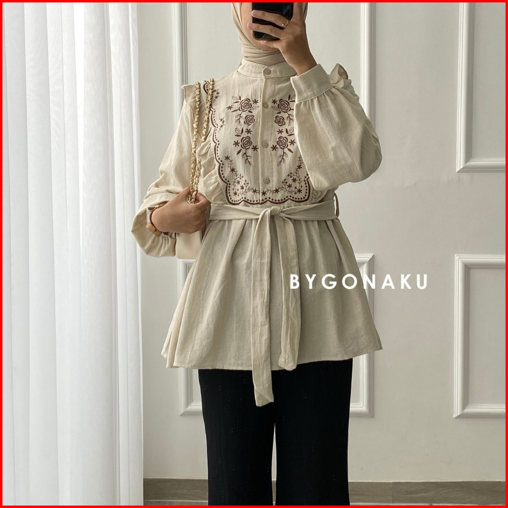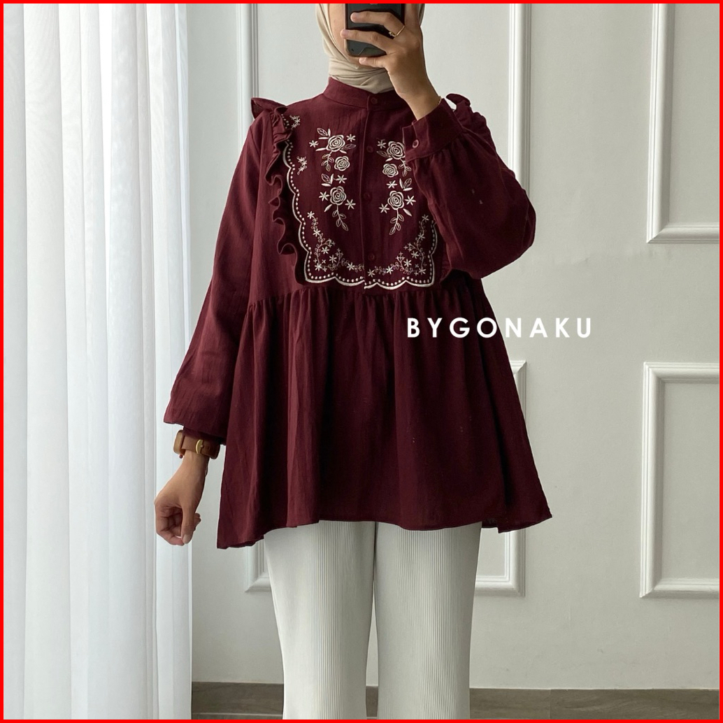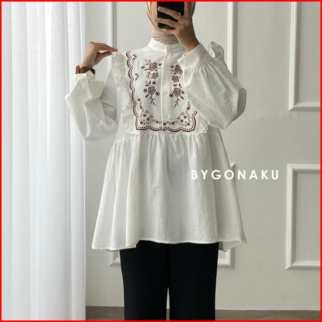 Gonaku Elora Embroidery Blouse Oversized By Gonaku Baju Kerja Bordir Atasan Wanita Busui Friendly Blouse Linen Basic Shi