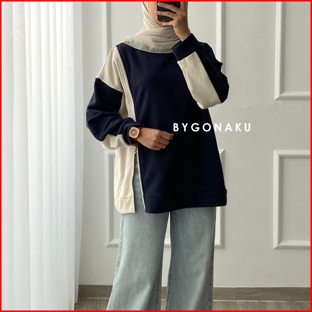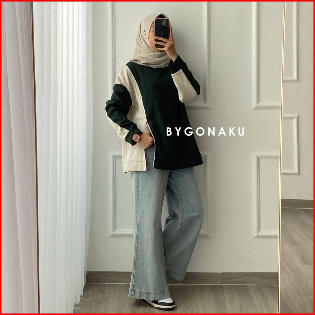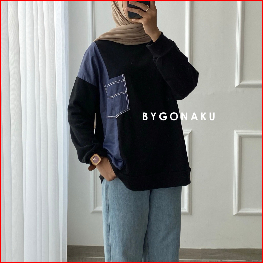 Gonaku Olla Basic Sweater Combi Oversized Stripes Bigsize Sweatshirt Knit Atasan Wanita Lengan Panjang Korean Style