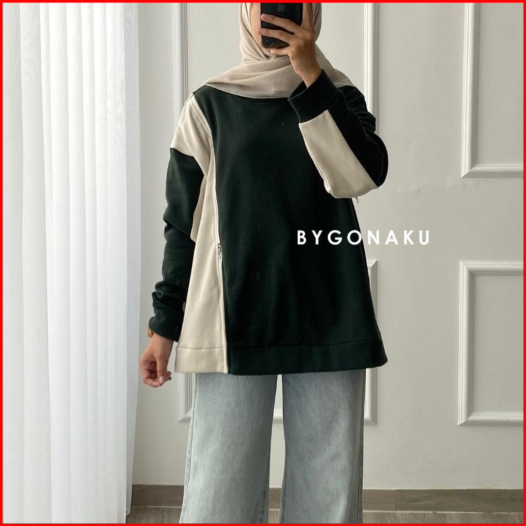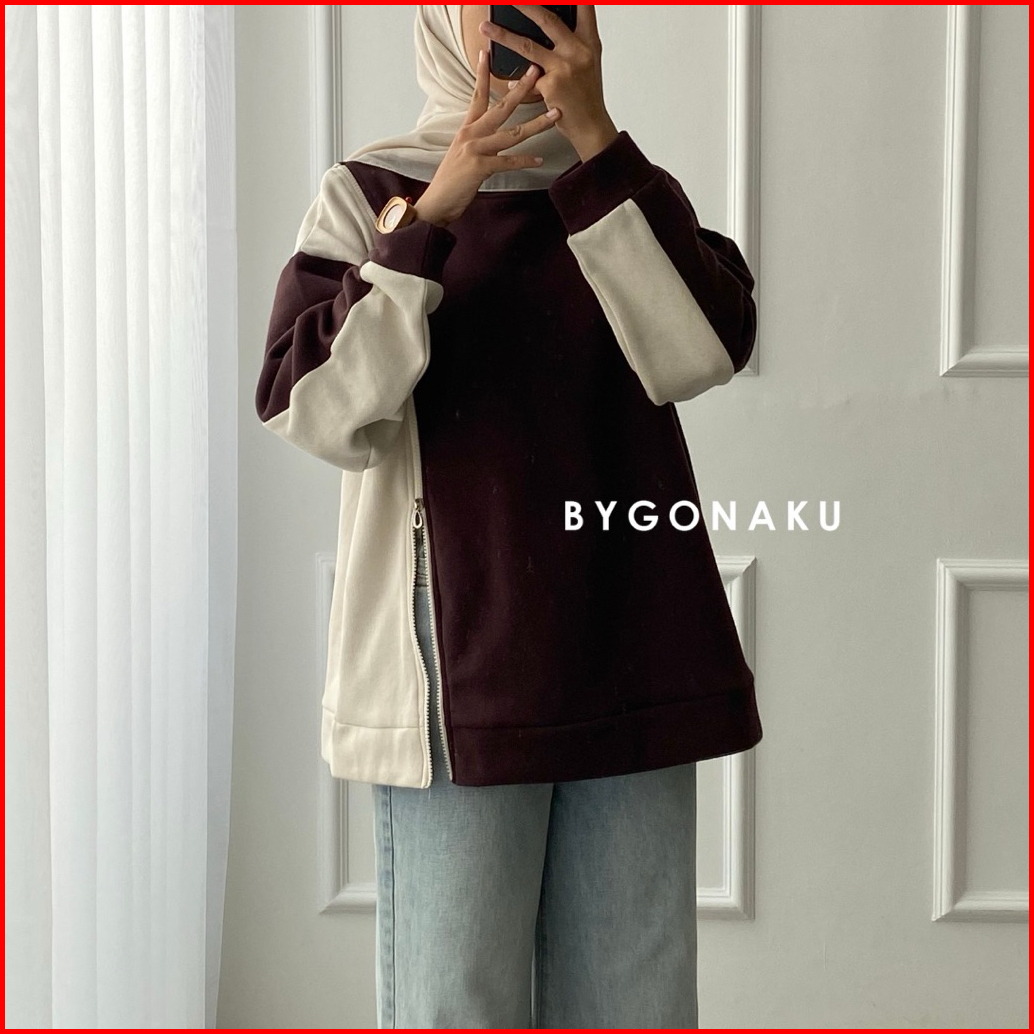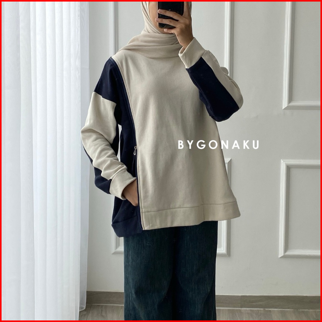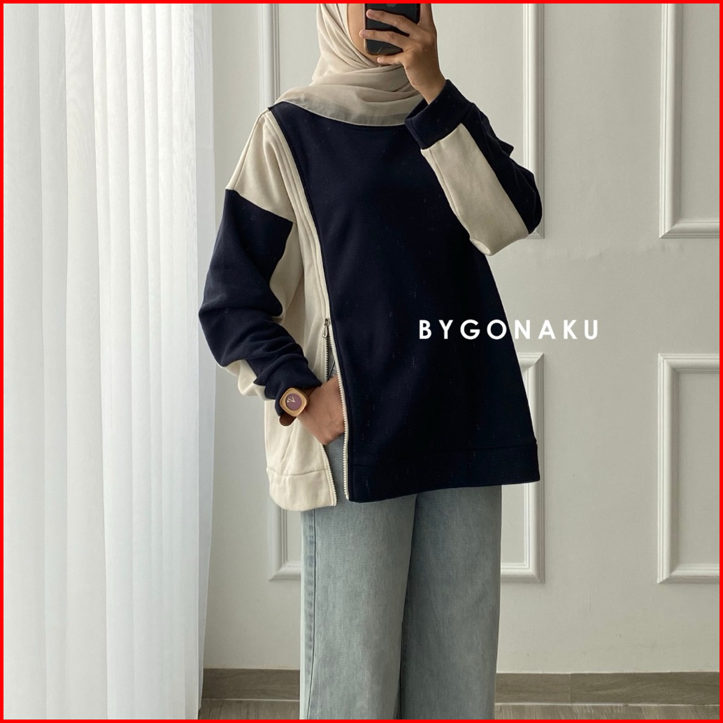 Gonaku Olla Basic Sweater Combi Oversized Stripes Bigsize Sweatshirt Knit Atasan Wanita Lengan Panjang Korean Style