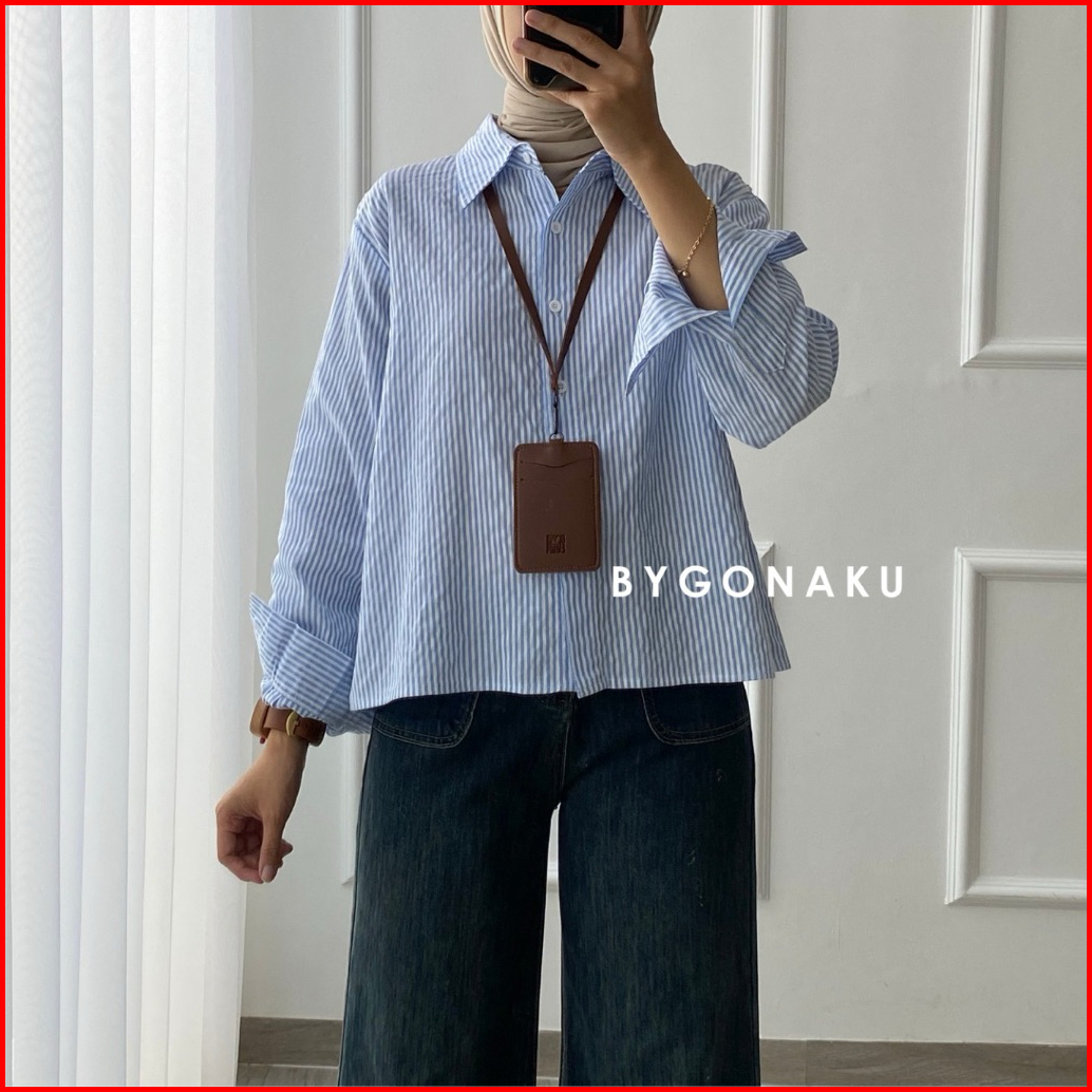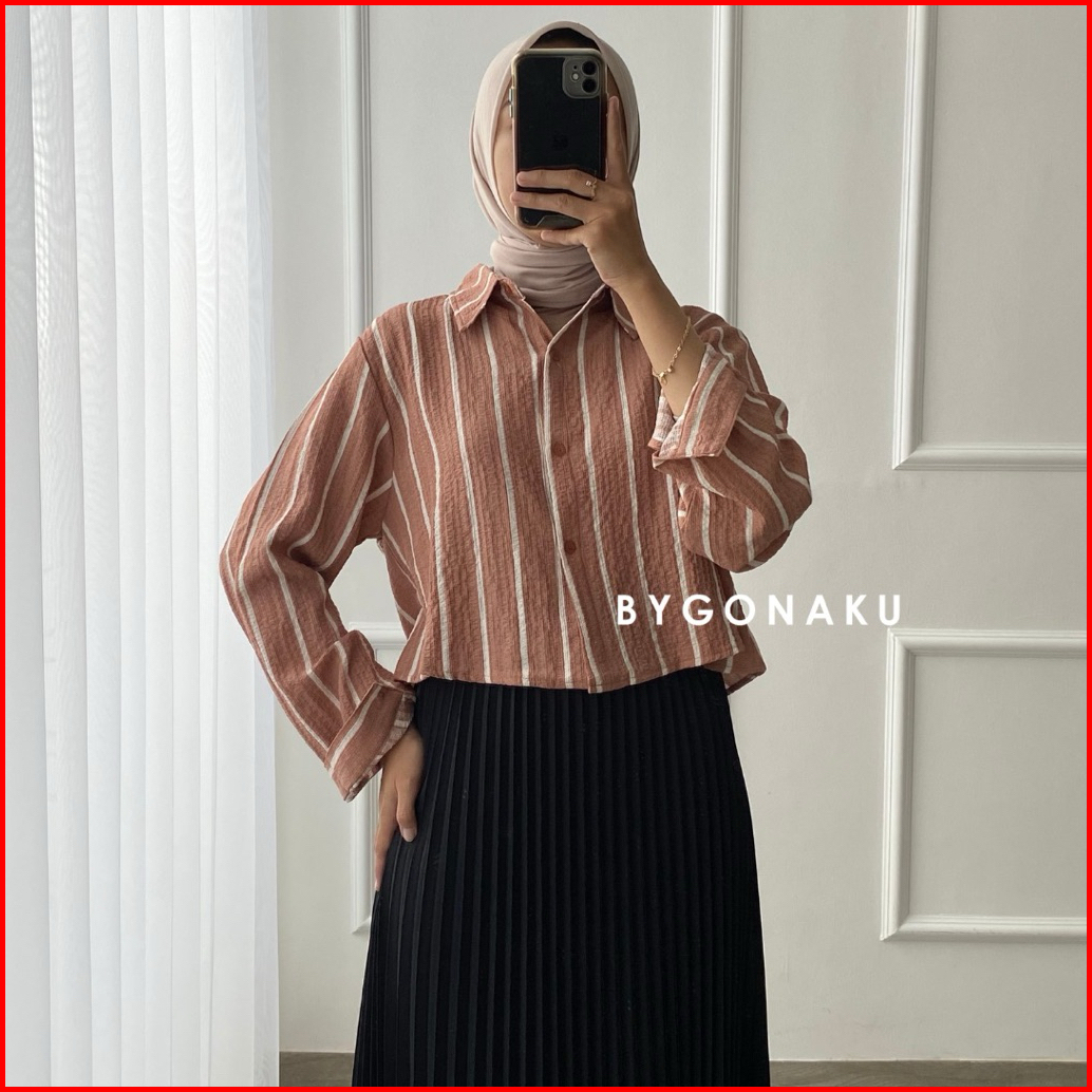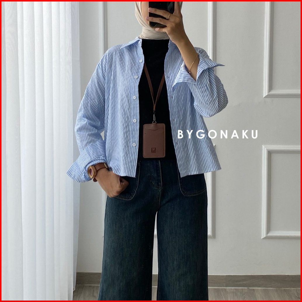 Gonaku Wylie Crop Top Shirt Kemeja Boxy Busui Friendly Atasan Wanita Crop Kemeja Crop Top Basic Shirt Kemeja Kotak Baju