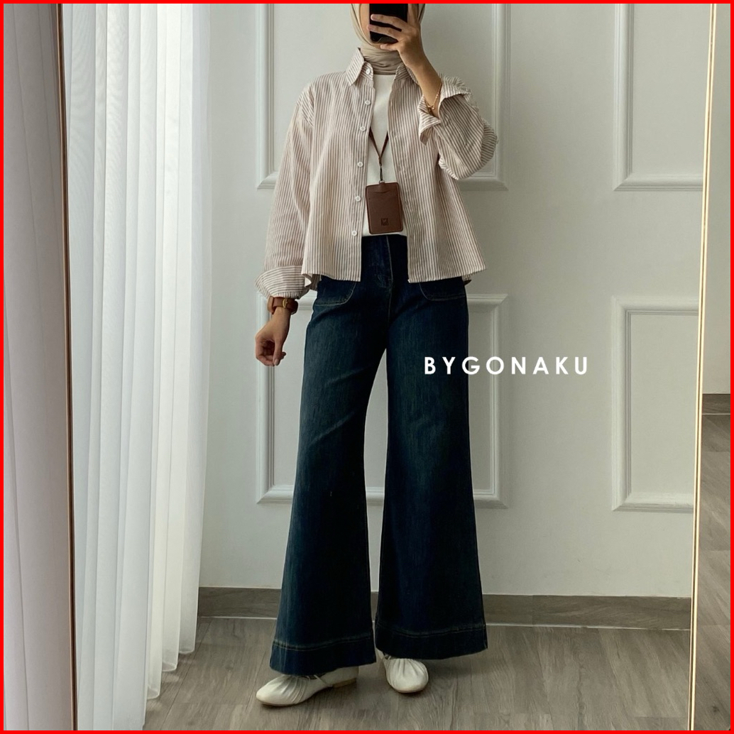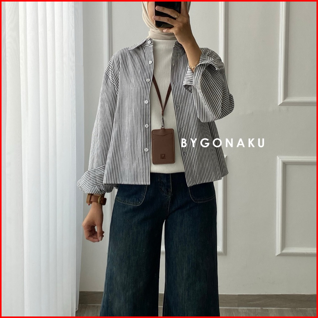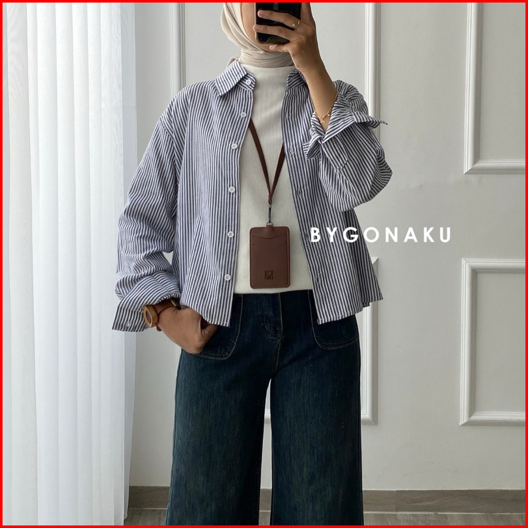 Gonaku Wylie Crop Top Shirt Kemeja Boxy Busui Friendly Atasan Wanita Crop Kemeja Crop Top Basic Shirt Kemeja Kotak Baju