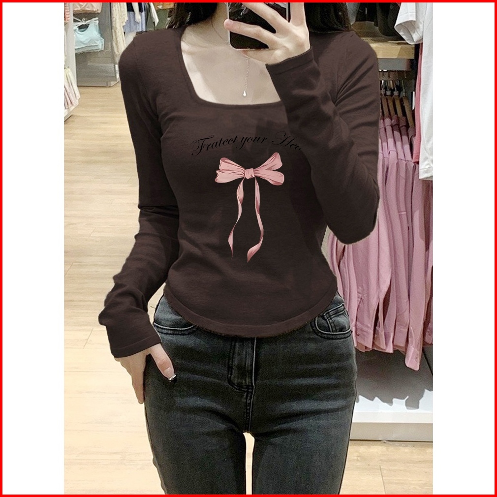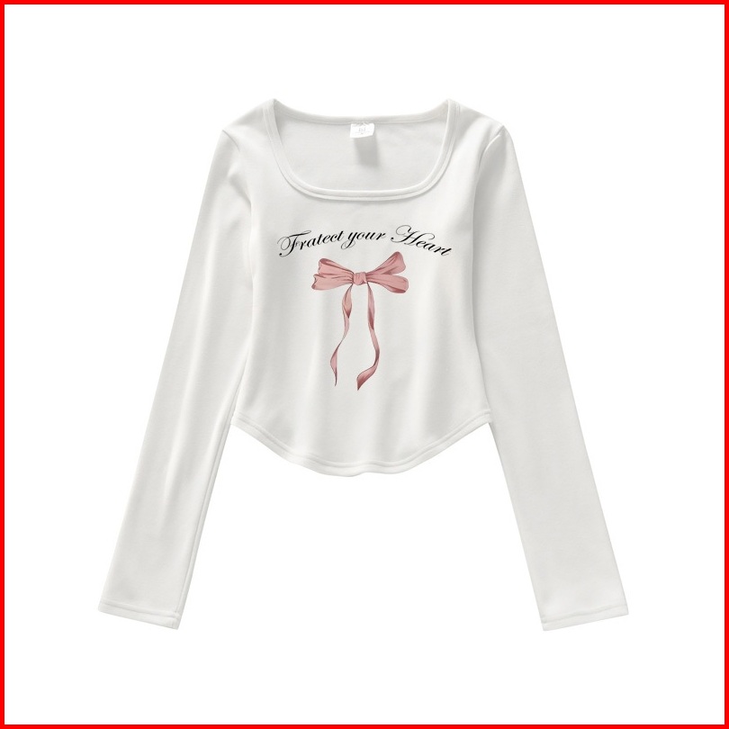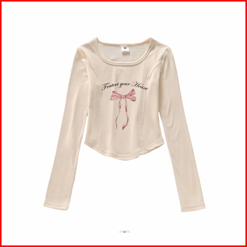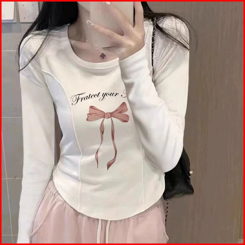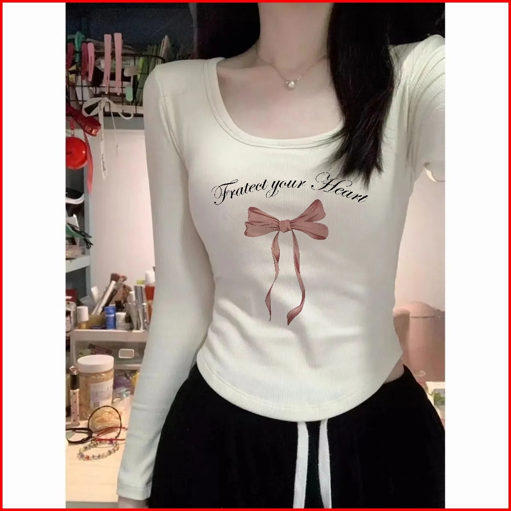 Atasan Wanita Korean Style Longsleeve Kemeja Putih Wanita Slim Crew Neck Crop Top Y2k Lengan Panjang Baju Wanita Kekinia