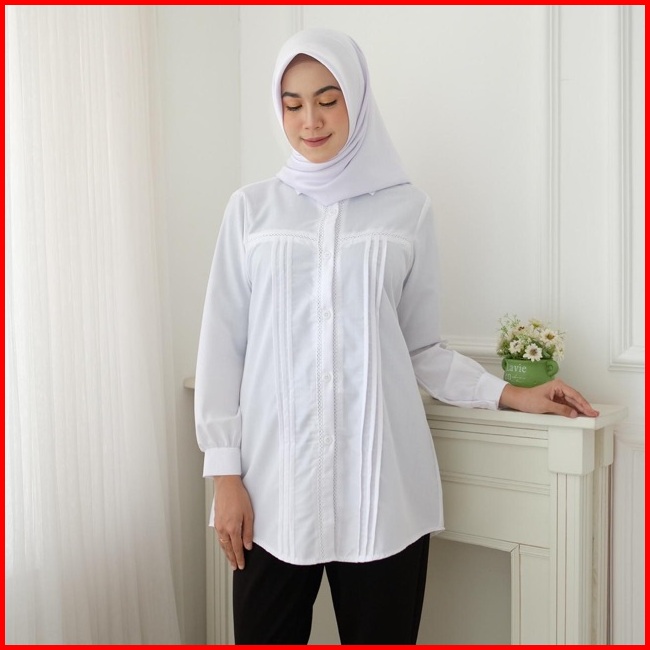 Seenaoutfit - Mesca Atasan Putih Blouse Putih Atasan Wanita Baju Putih Kerja Wanita Kantor Pns Guru Atasan Putih Wanita