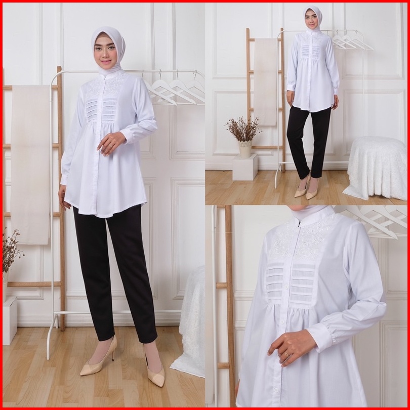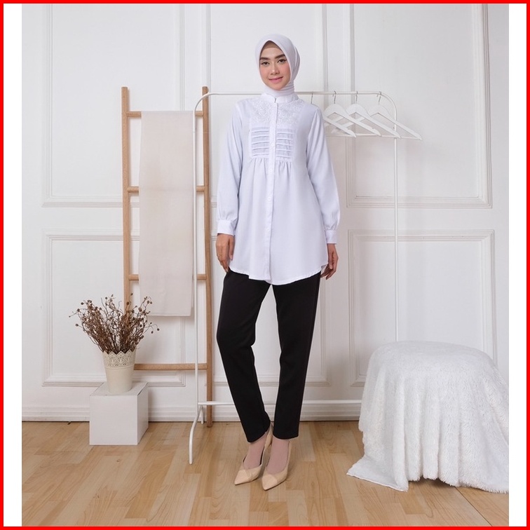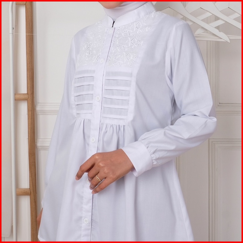 Seenaoutfit - Bs 012 Baju Putih Atasan Putih Wanita Kerja Kantoran Pns Guru Seragaman Blouse Putih Wanita Lengan Panjang