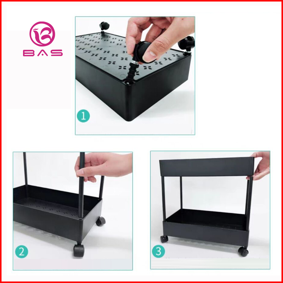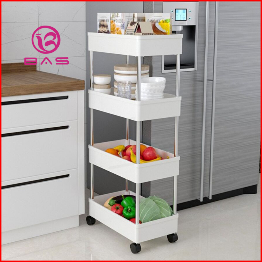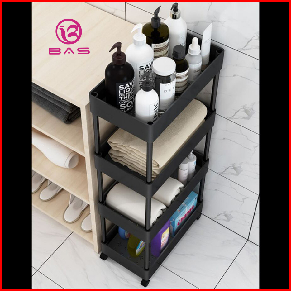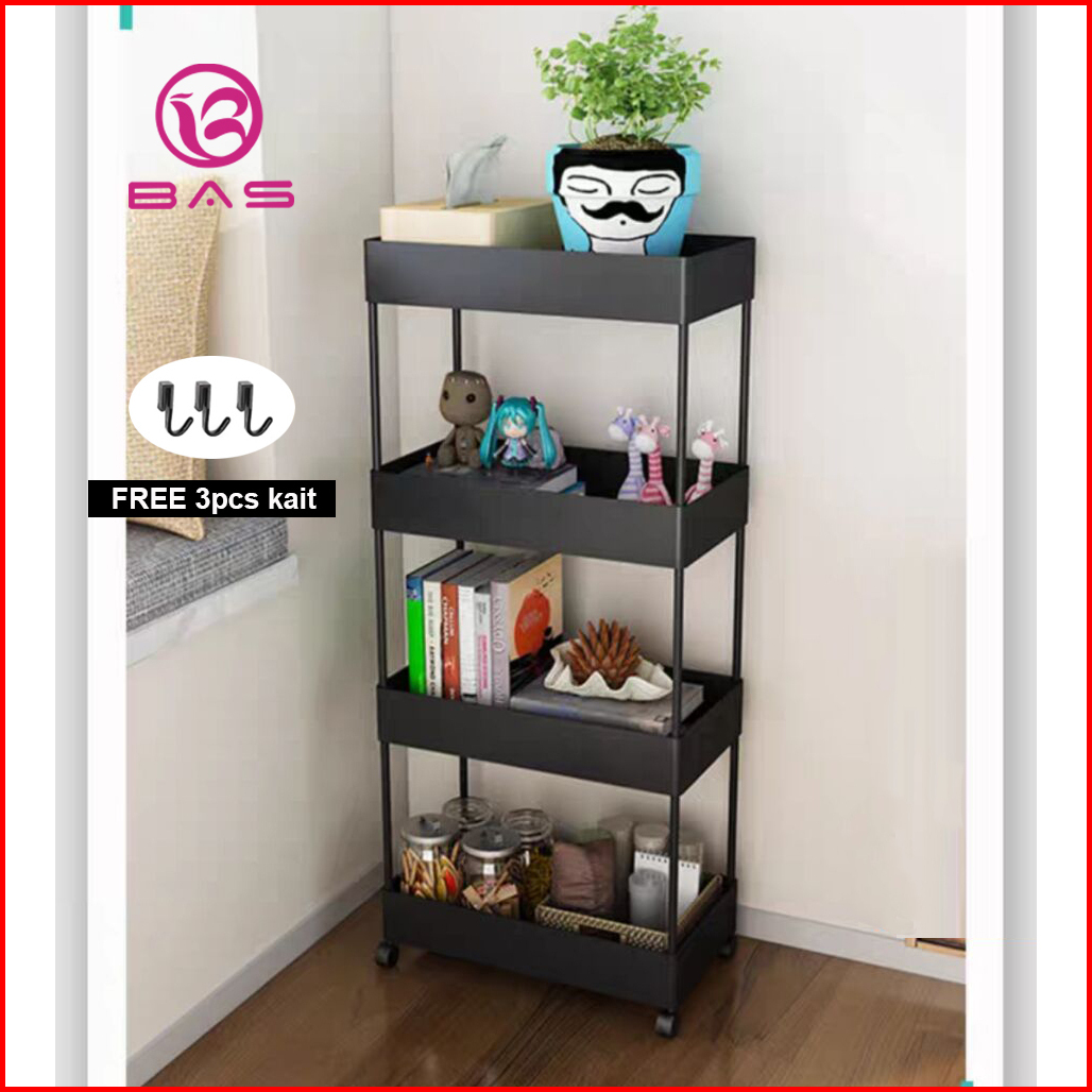 Bas Square Rak Troli Rak Dapur Rak Serbaguna 4 Tingkat Dengan Roda