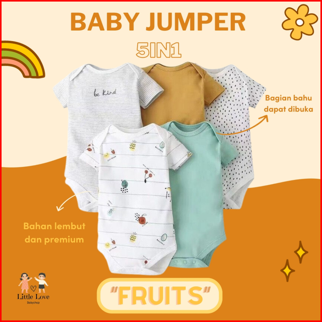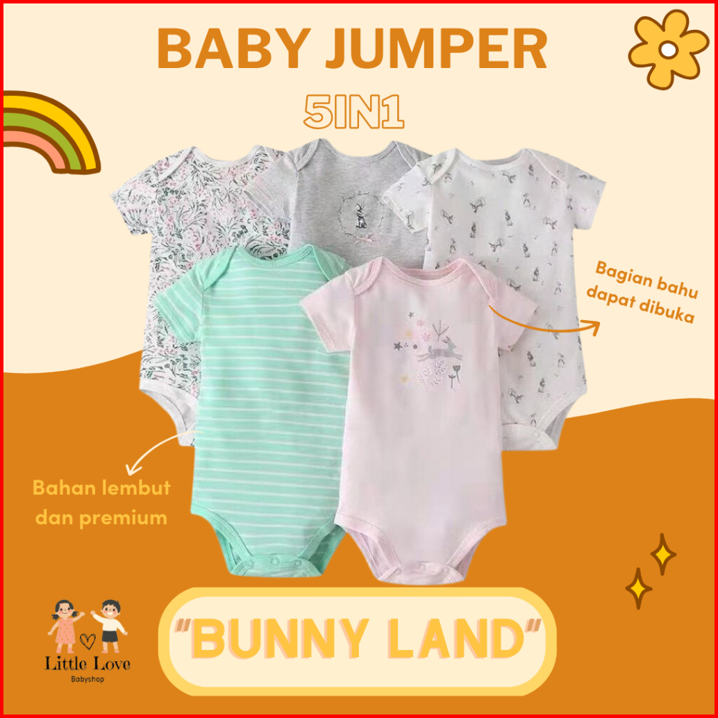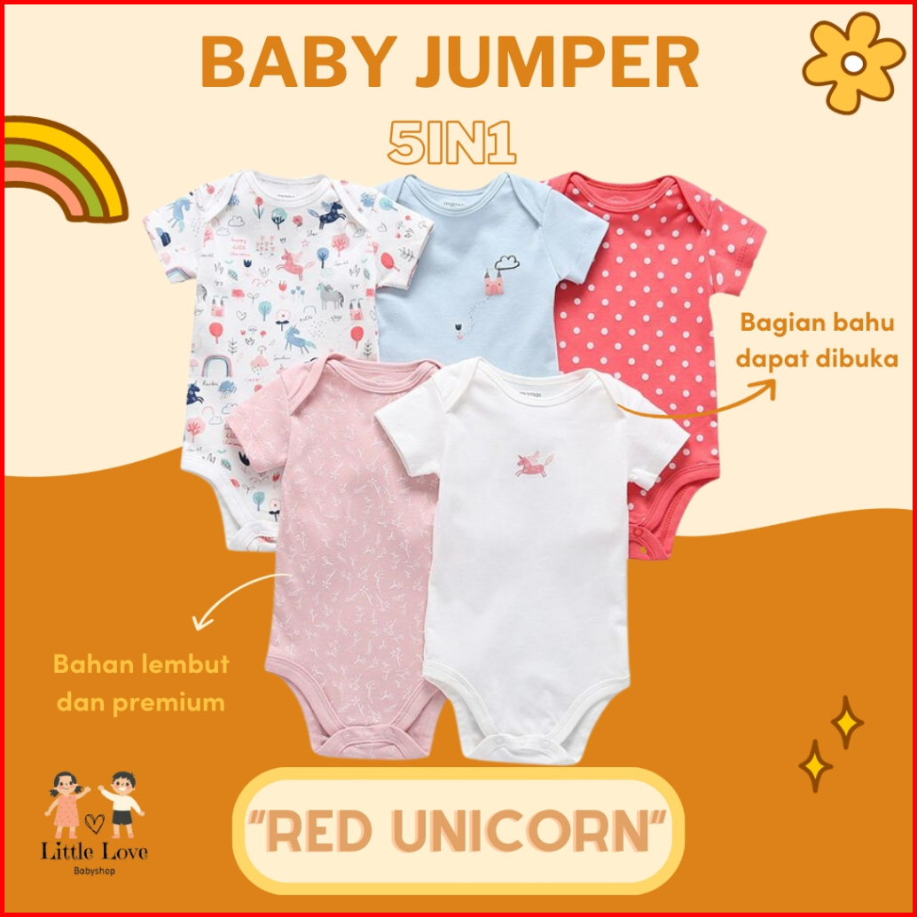 Mamas Papas Premium Baby Bodysuit 5 Pcs Set Boy Dan Girl Short Sleeve