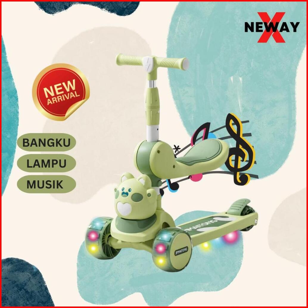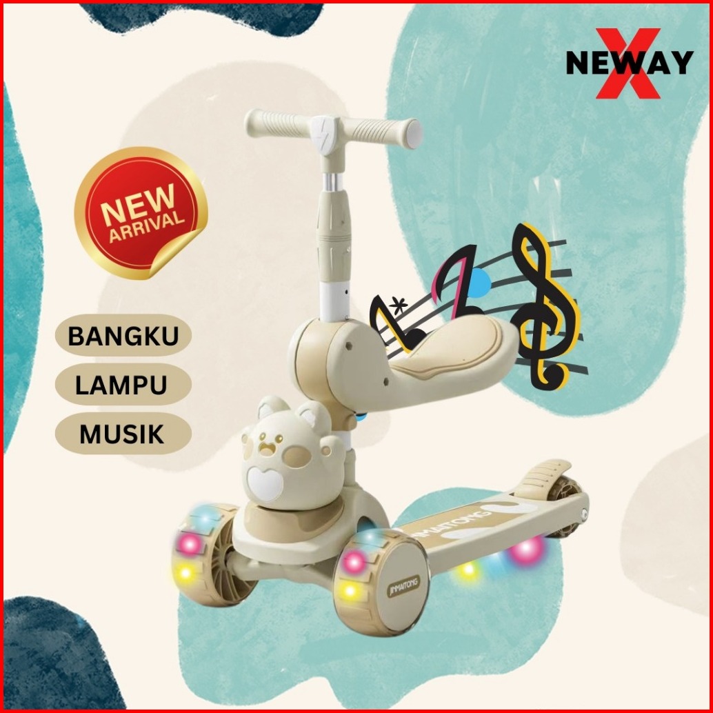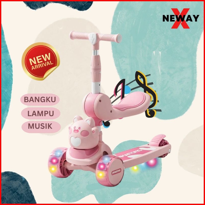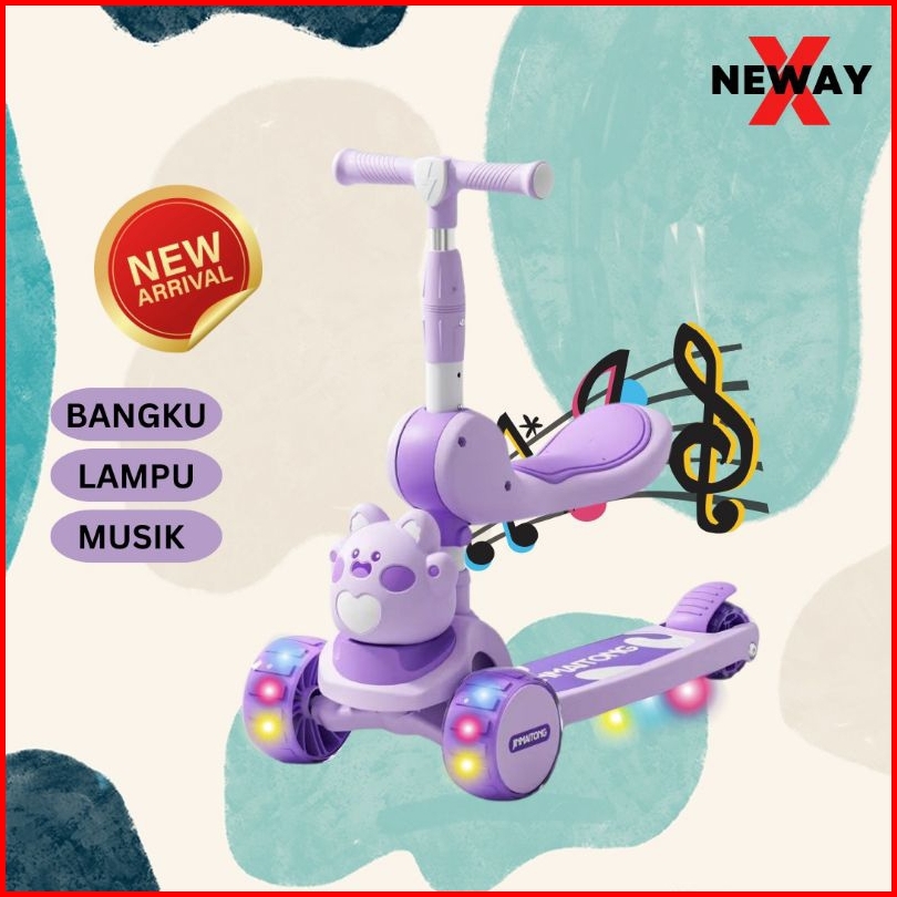 Scooter Mainan Anak Marmut Love 2 In 1 Skuter Lipat Duduk Roda Tiga Lampu Musik Rem Edukasi Toys
