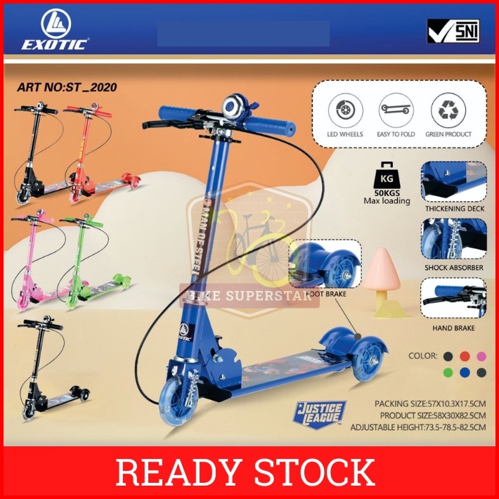Scooter Skuter Otoped Lipat Karakter Superhero Anak Rem Tangan Exotic St-2015 2020 2023 Justice League Rem Tangan