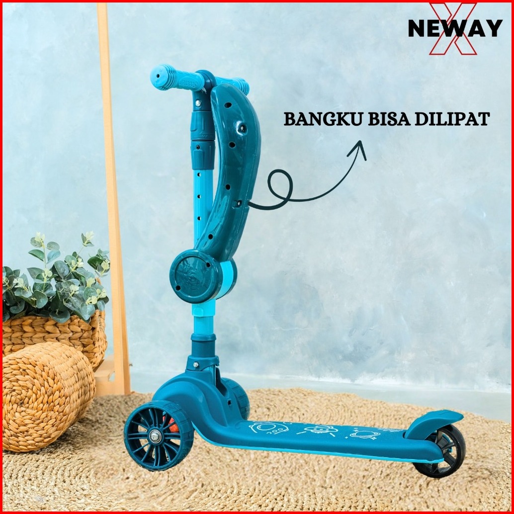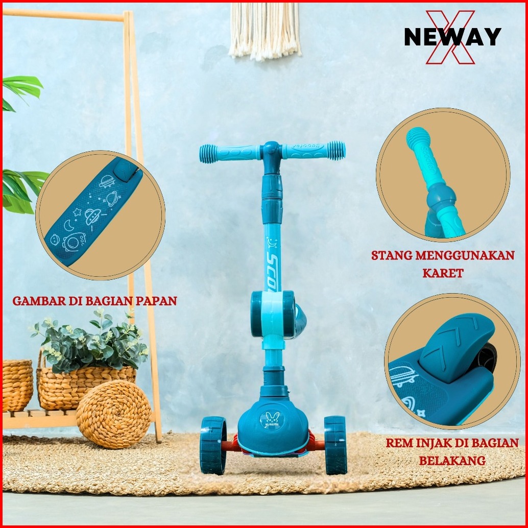 Scooter Mainan Anak Antariksa 2in1 Skuter Lipat Duduk Roda Tiga Otoped Lampu Musik Rem Galaksi Toys