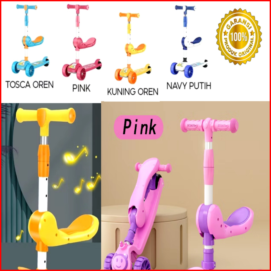 Skuter Anak Roda 3 Mainan Scooter Otoped Bisa Lipat Dengan Lampu Musik