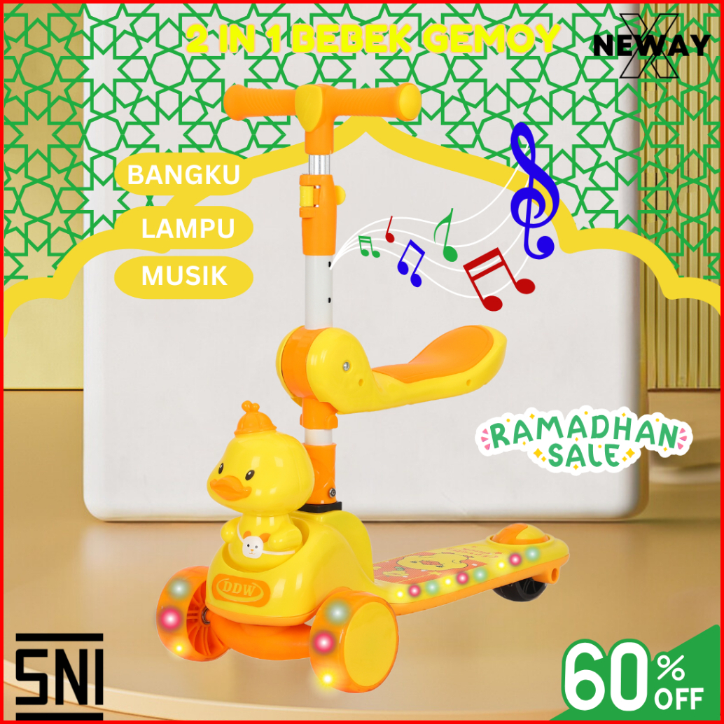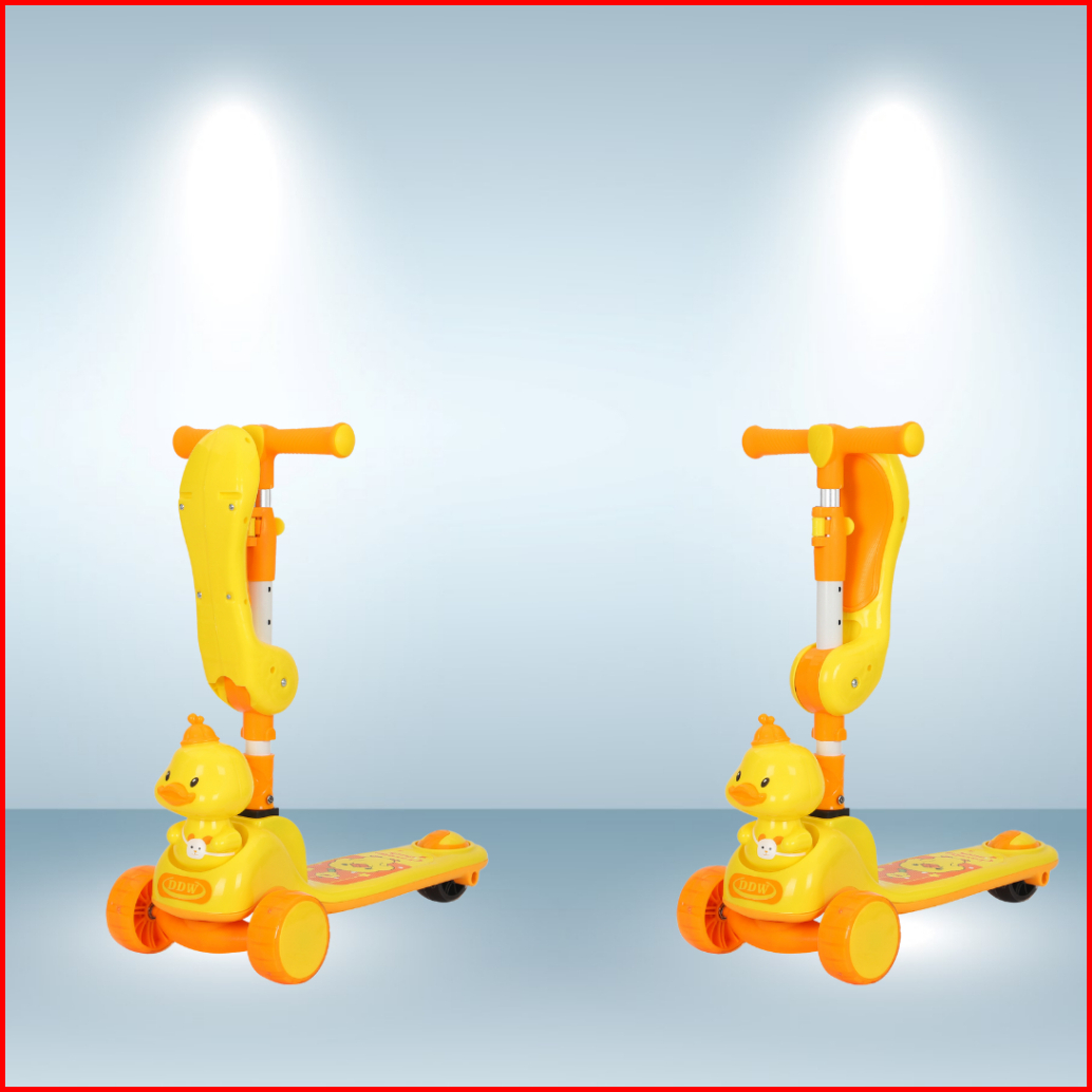 Scooter Mainan Anak 3d Duck 2in1 Skuter Lipat Roda Tiga Lampu Musik Rem Edukasi Model Bebek Gemoy Cu