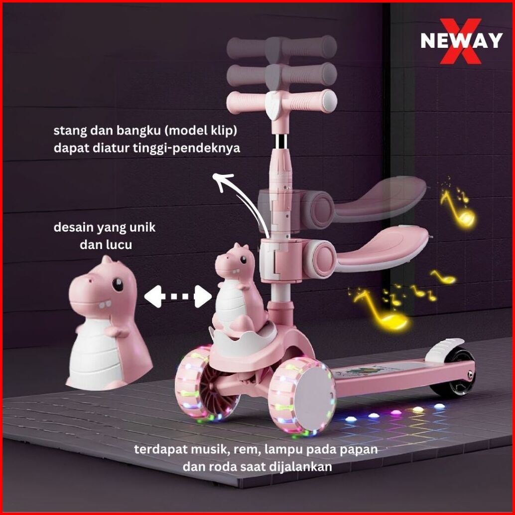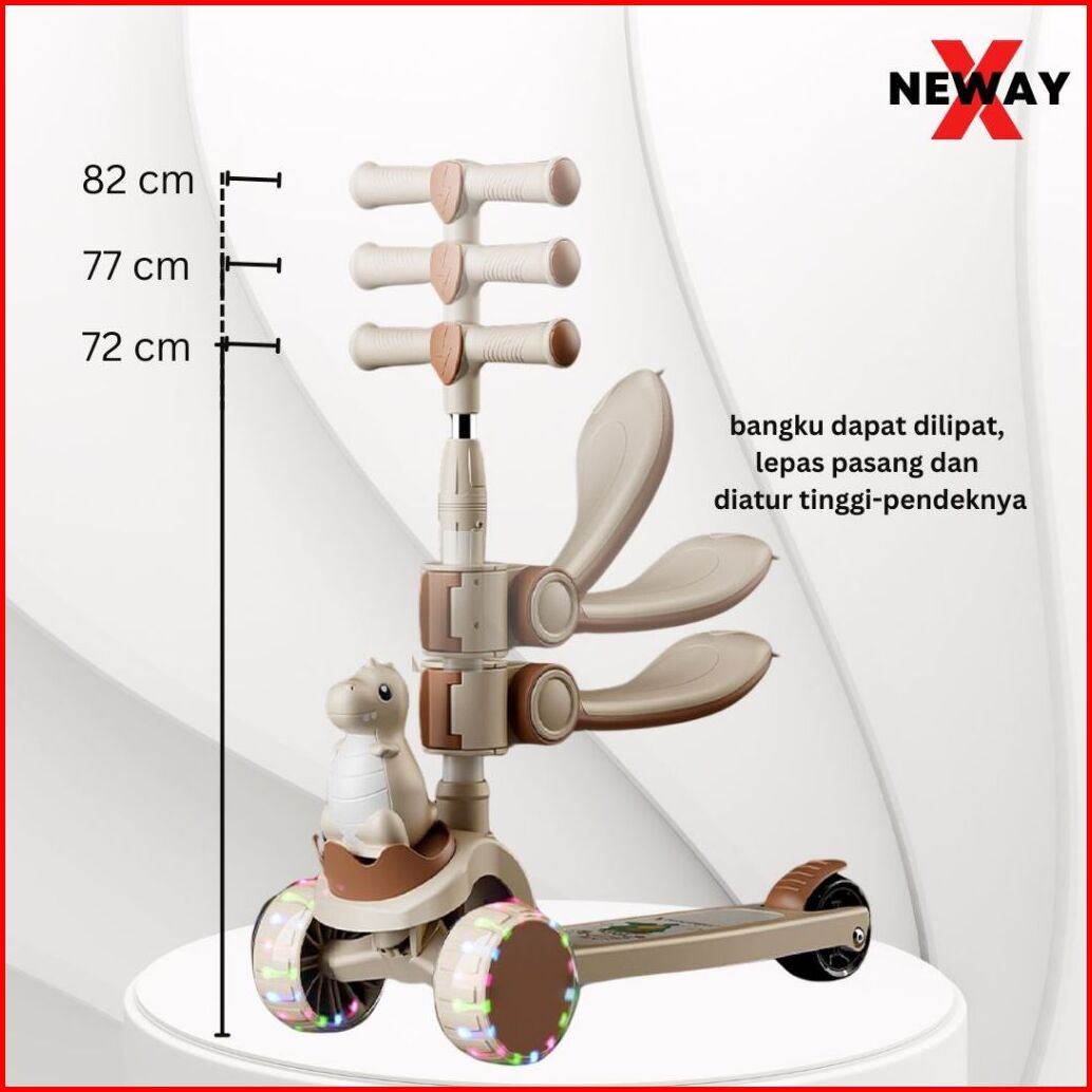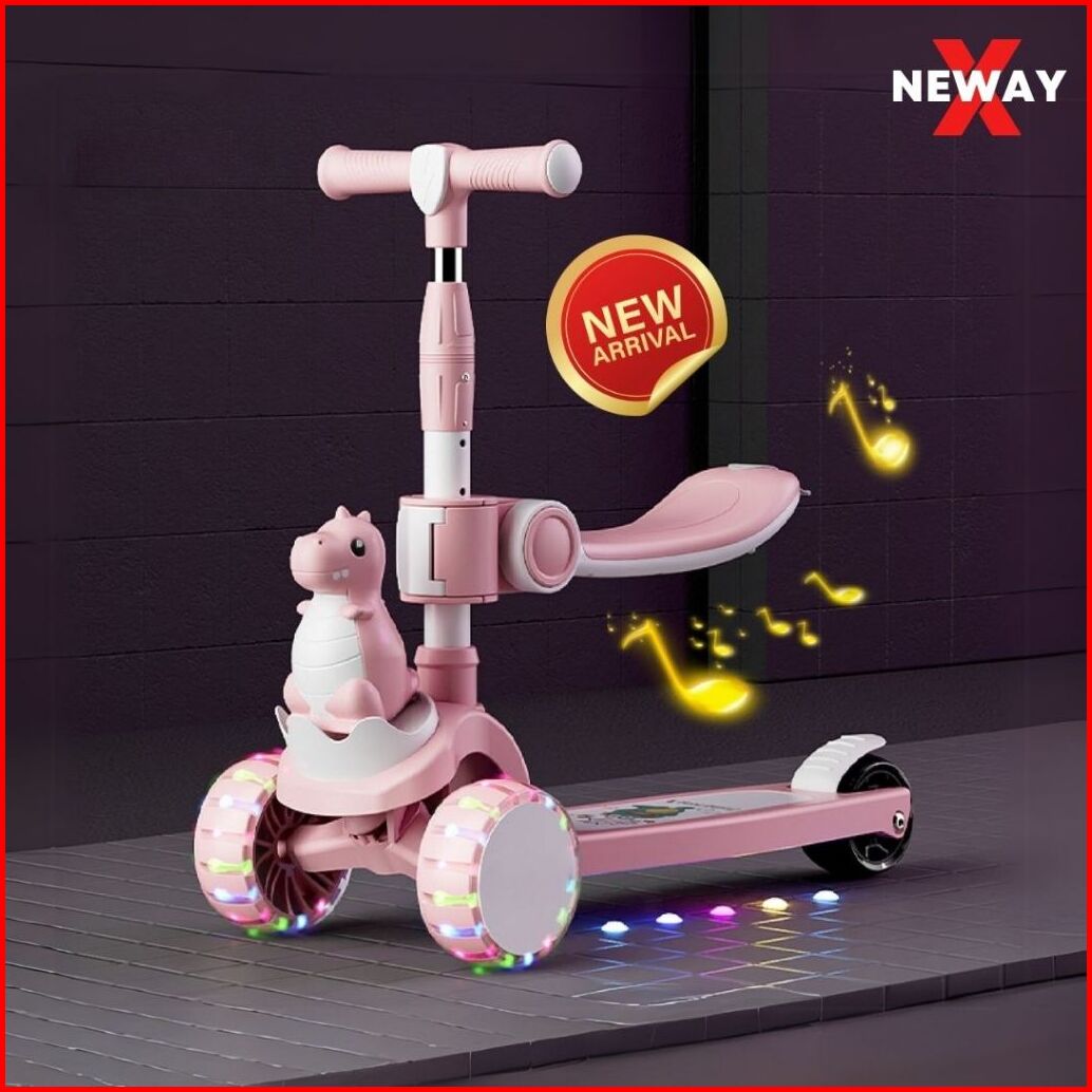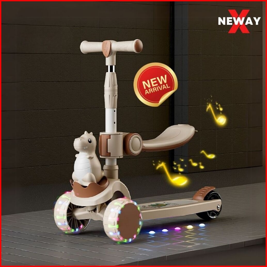 Scooter Mainan Anak Capybara 2 In 1 Skuter Lipat Duduk Kapibara Lucu Roda Tiga Lampu Musik Toys