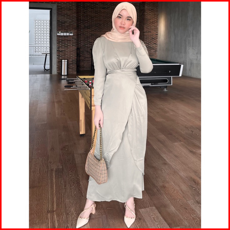 Yasmin Dress - Dress Kaftan Satin Silk Gamis Kekinian Gamis Kondangan Dress Korean Style Gamis Wudhu Friendly Dress Prem