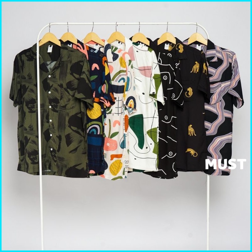 Must Kemeja Hawai Pria Wanita Motif Printing Abstrak Vintage Casual Shirt Lengan Pendek Retro