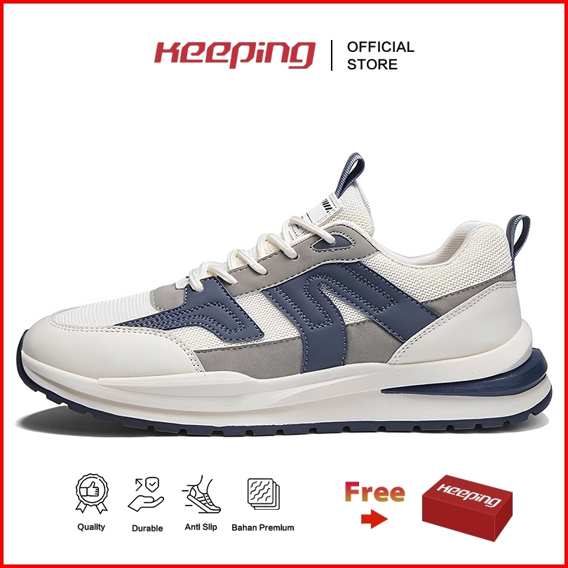 Keeping Sepatu Sneakers Pria Original Sepatu Olahraga Lari Pria Lokal Brand Kets Jalan Santai Putih Biru Sport Running S