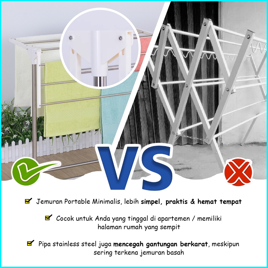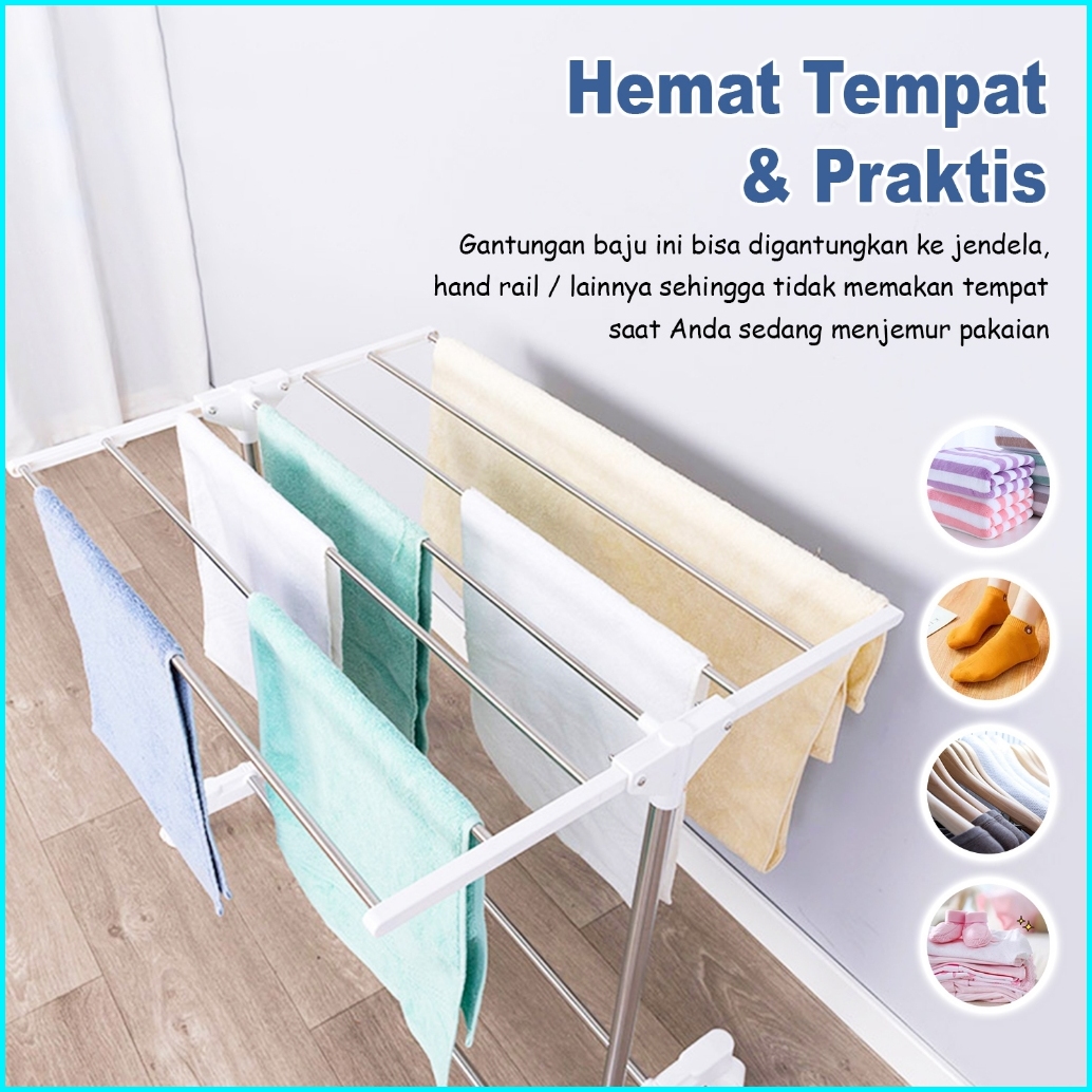 Rak Jemuran Handuk Pakaian Sepatu Jemuran Lipat Serbaguna Stainlees - A2301 Gantungan Pengering Baju Bayi Celana Drying