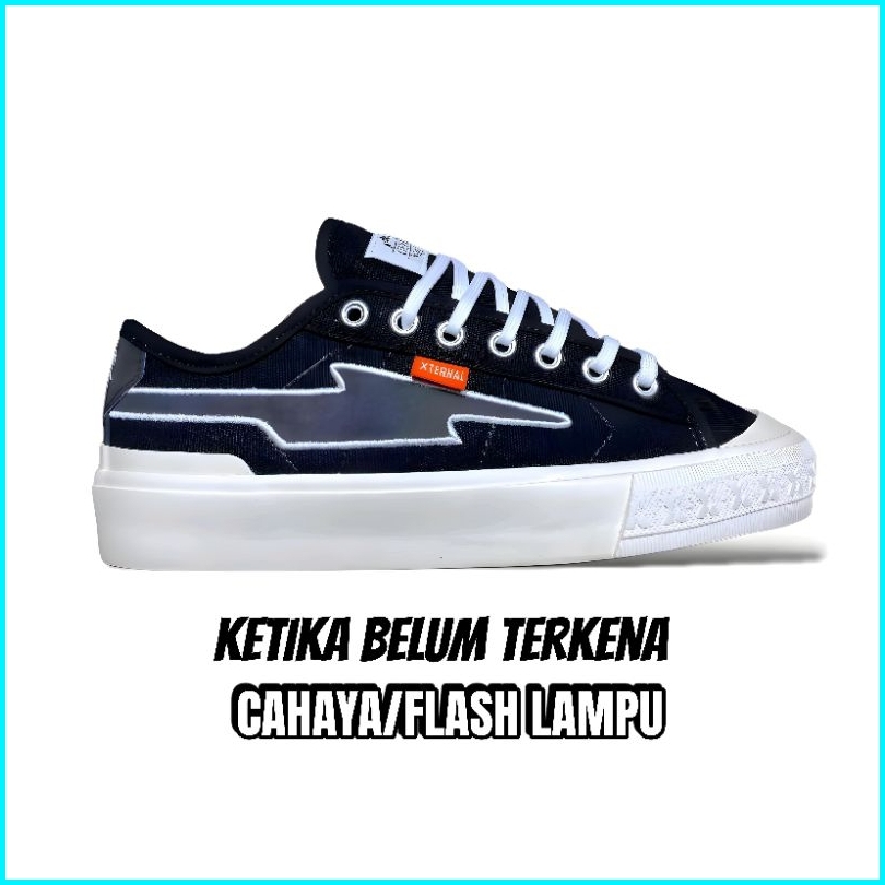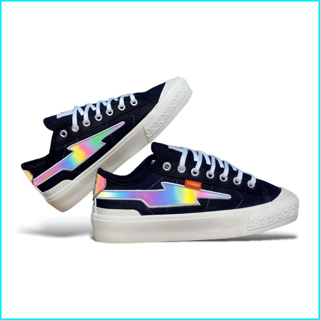 Sepatu Xternalstepsure - Sepatu Sneakers Mitterns Storm Low Black White Reflective Pelangi Casual