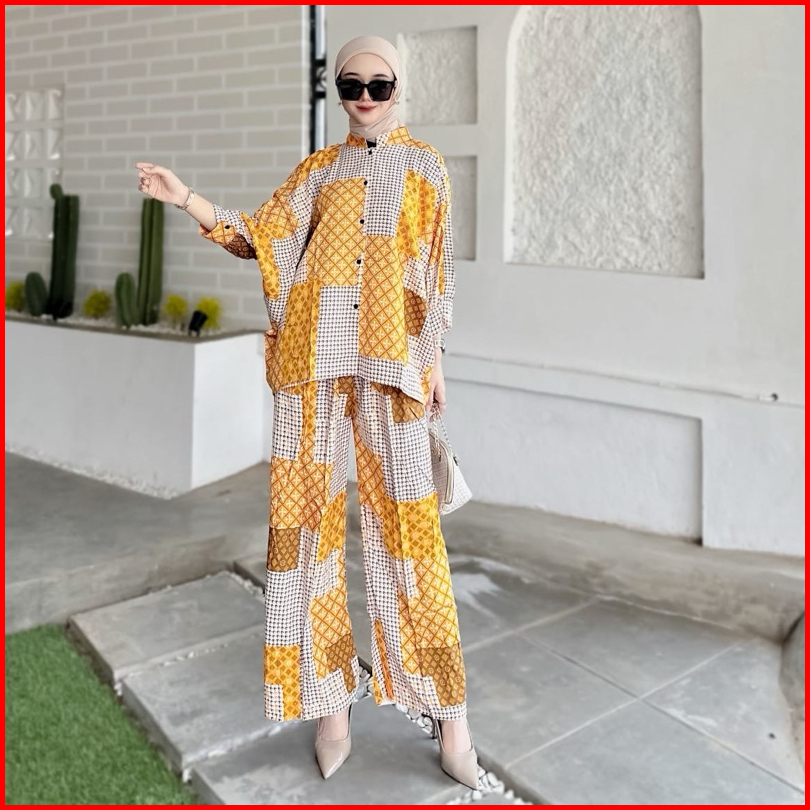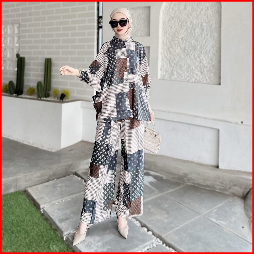 One Set Alisa One Set Rayon Setelan Rayon Motif