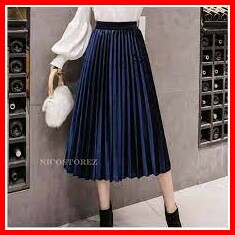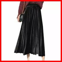 Rok Plisket Velvet Bludru Pendek 7 8 Rok Maxi Bludru Pendek Velvet Bludru Maxi Skirt