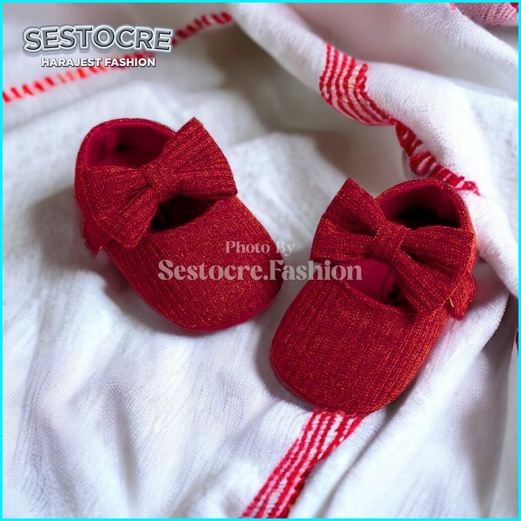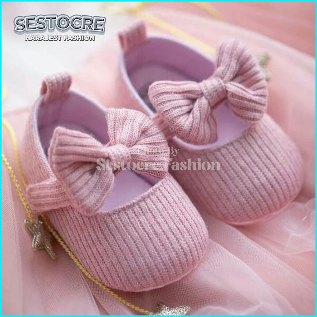 Sepatu Bayi Perempuan 0 12 Bulan Sepatu Anak Baby Shoes Prewalker Tali Pita Lucu Anti Slip Ringan Bowknot Shoes - Shf