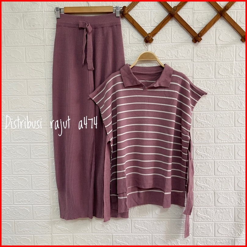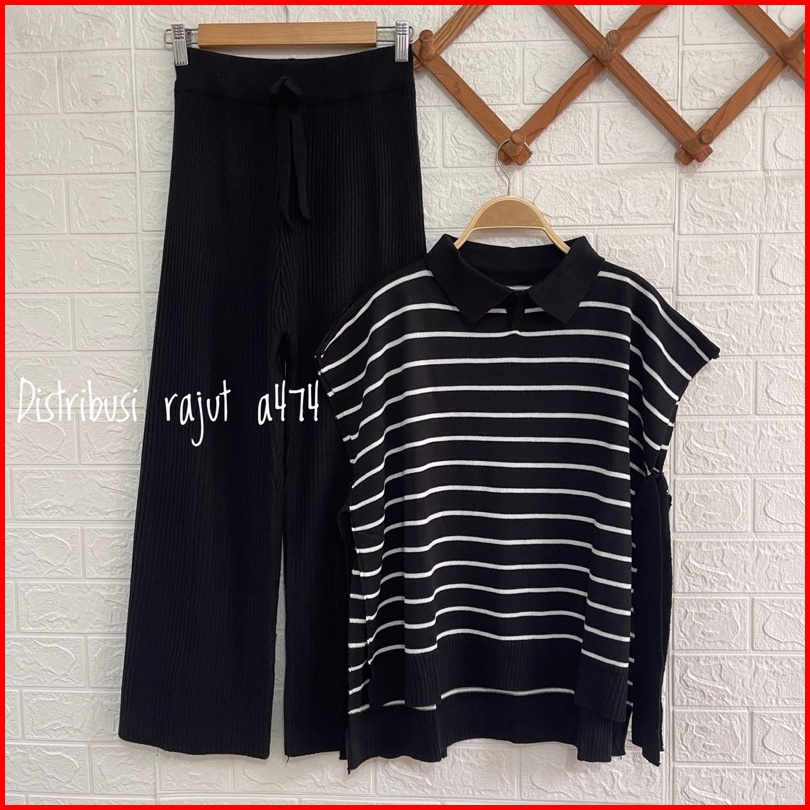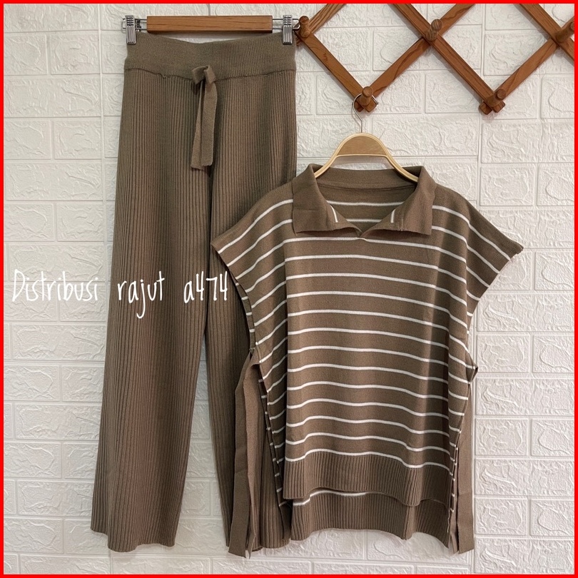 Oneset Vest Tali Nadia Setelan Celana Kulot Rajut Wanita