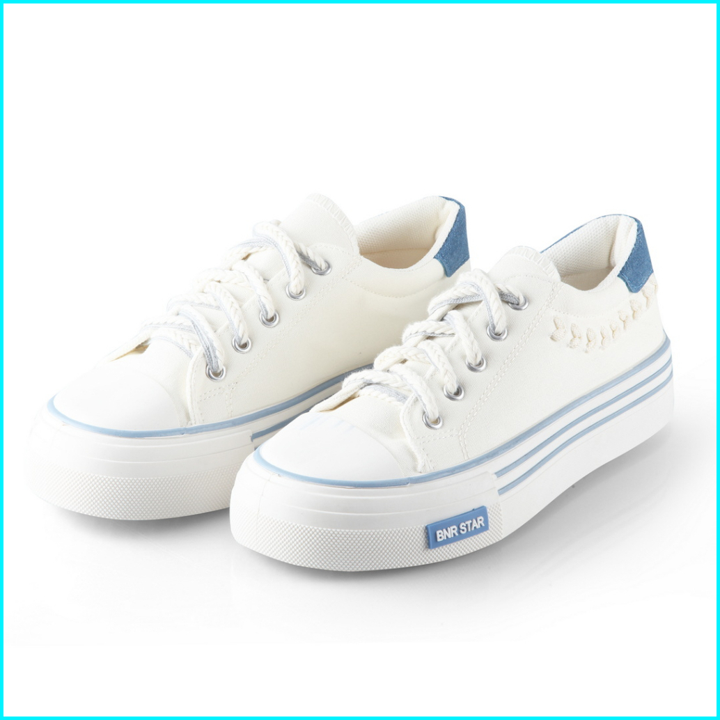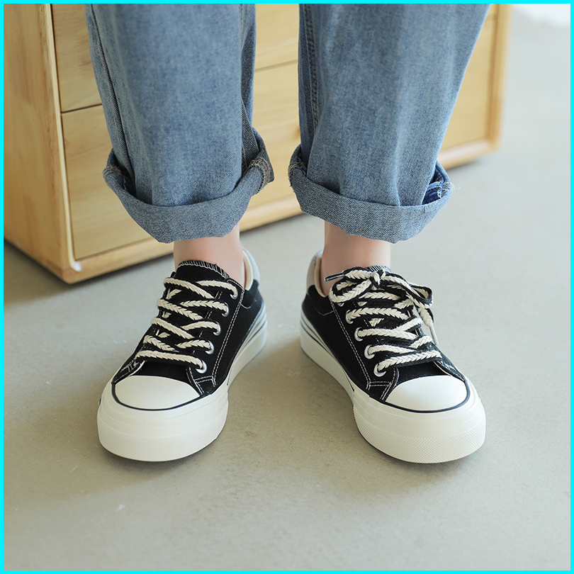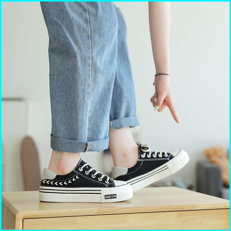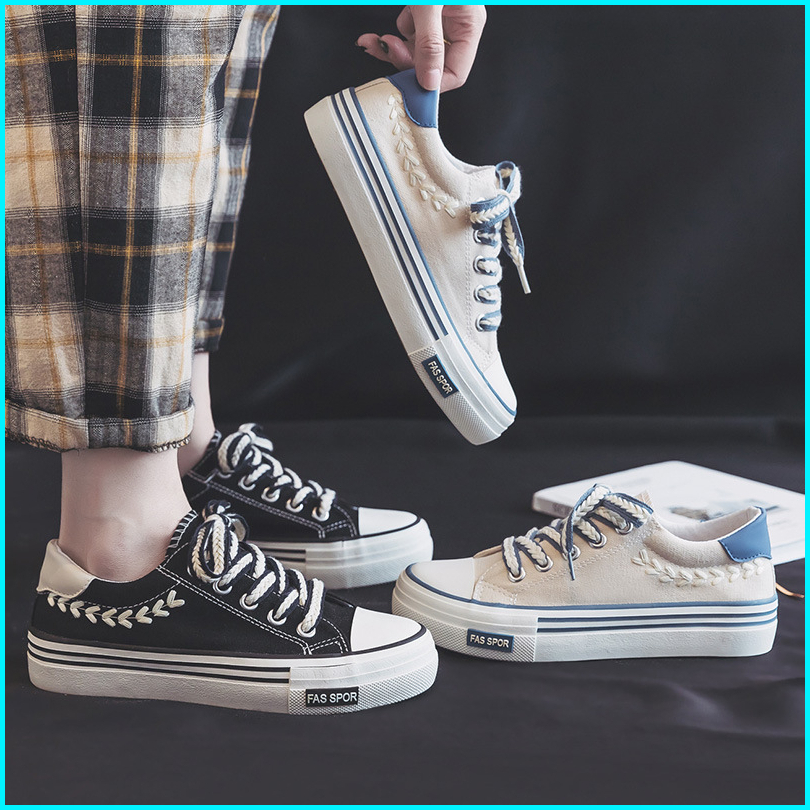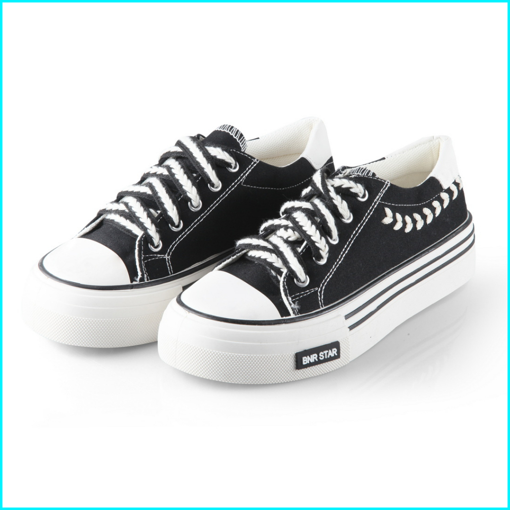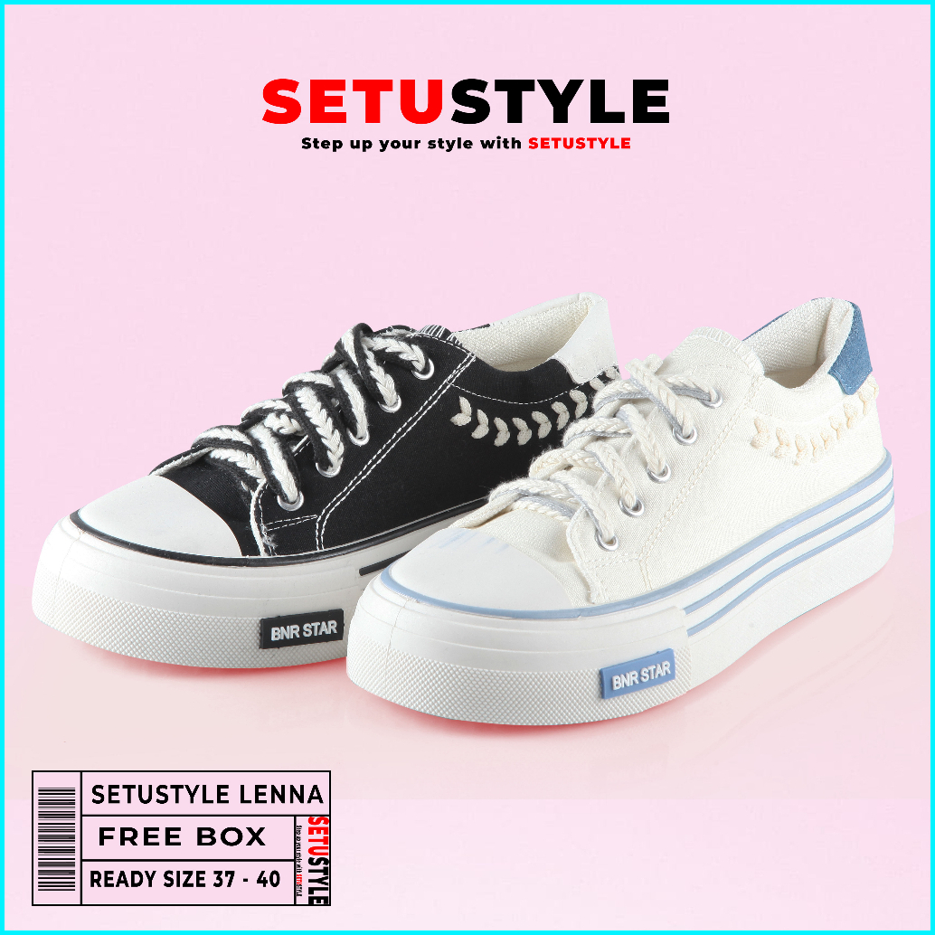 Setu Style Lenna Sepatu Sneakers Wanita Motif Kepang Hitam Dan Putih Korean Style Kekinian
