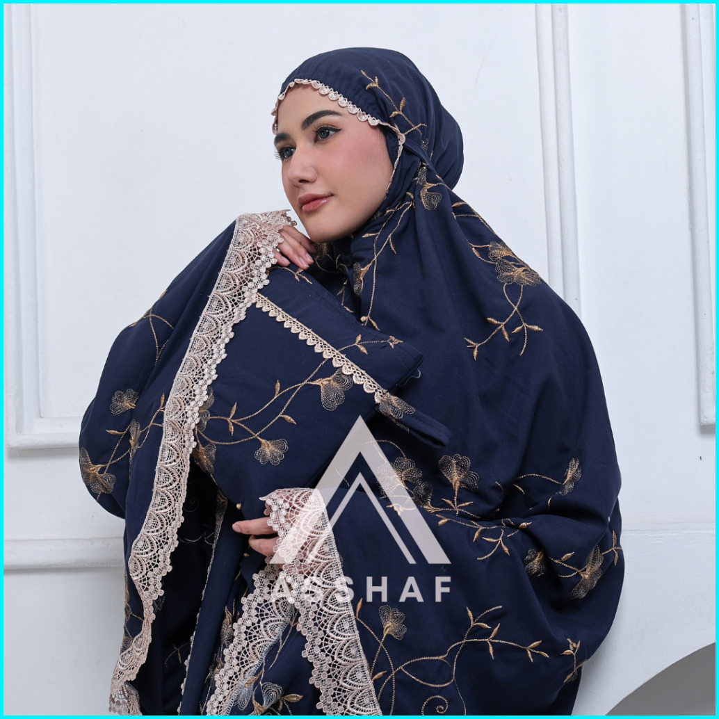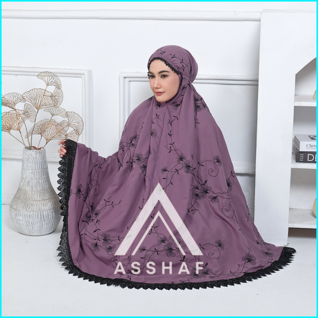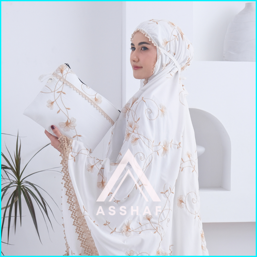Asshaf - Mukena Dewasa Katun Premium Bordir Bunga Amarilis Renda Mewah